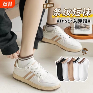 袜子女款 短筒袜白色防臭短袜显瘦堆堆 秋春纯棉中筒袜ins2025新款