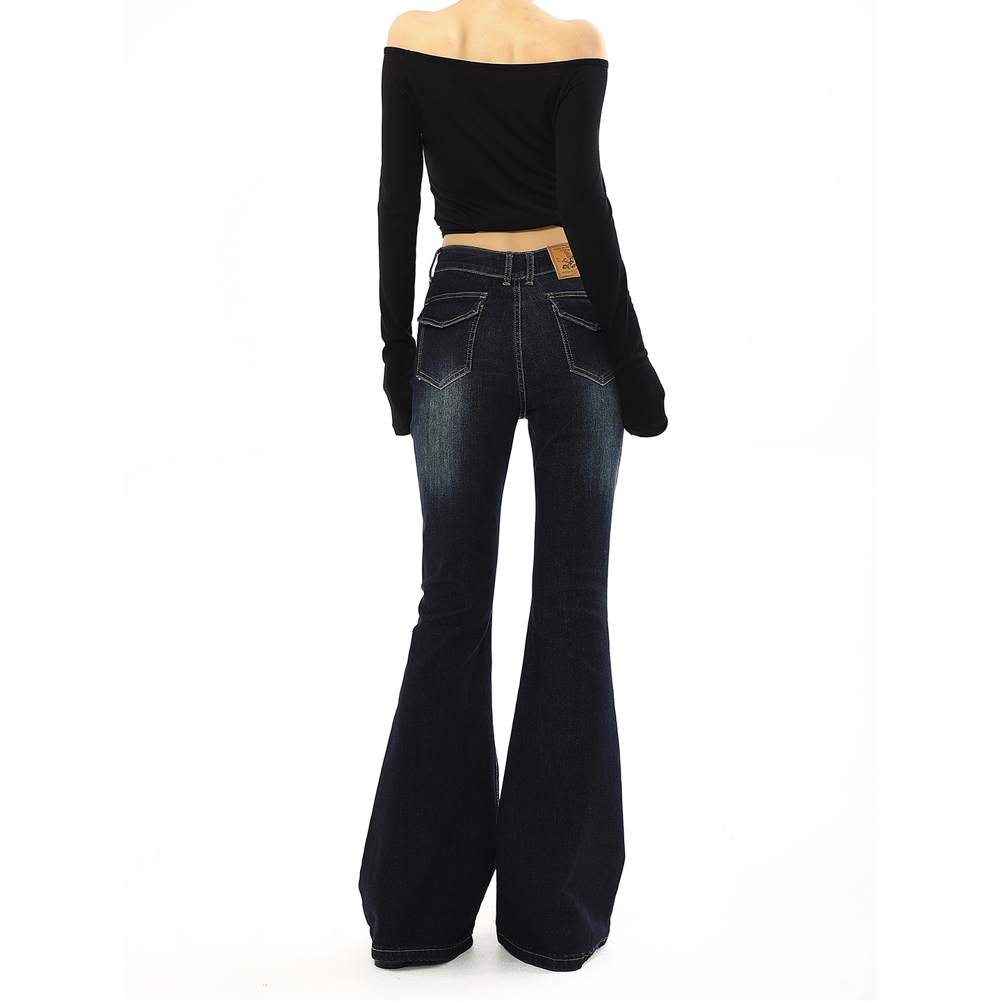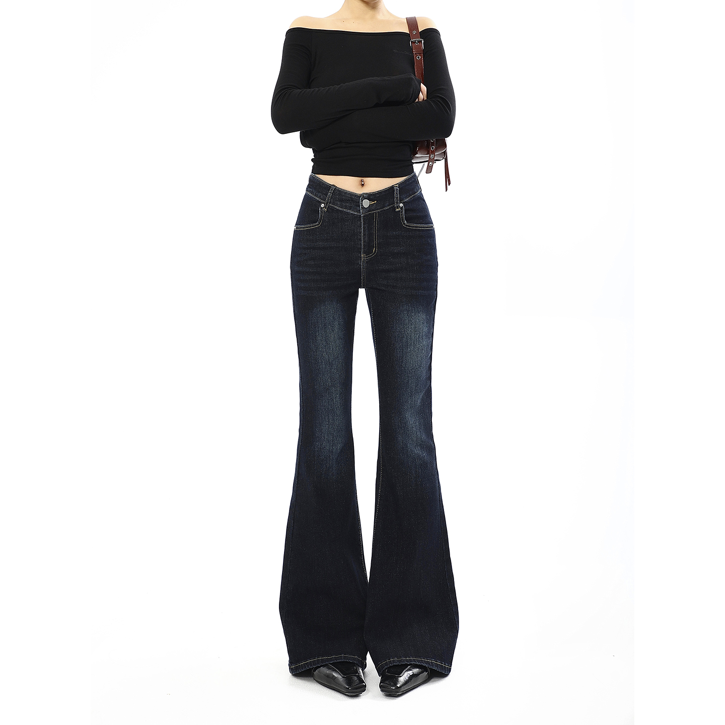 子女款 中高腰不贴腿显瘦裤 2025复古蓝微喇牛仔裤 王家有鱼早秋新款