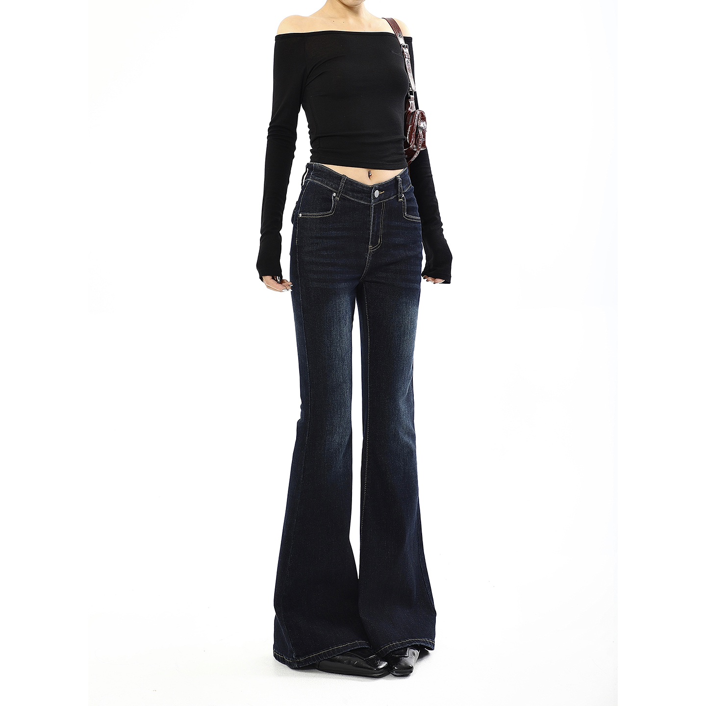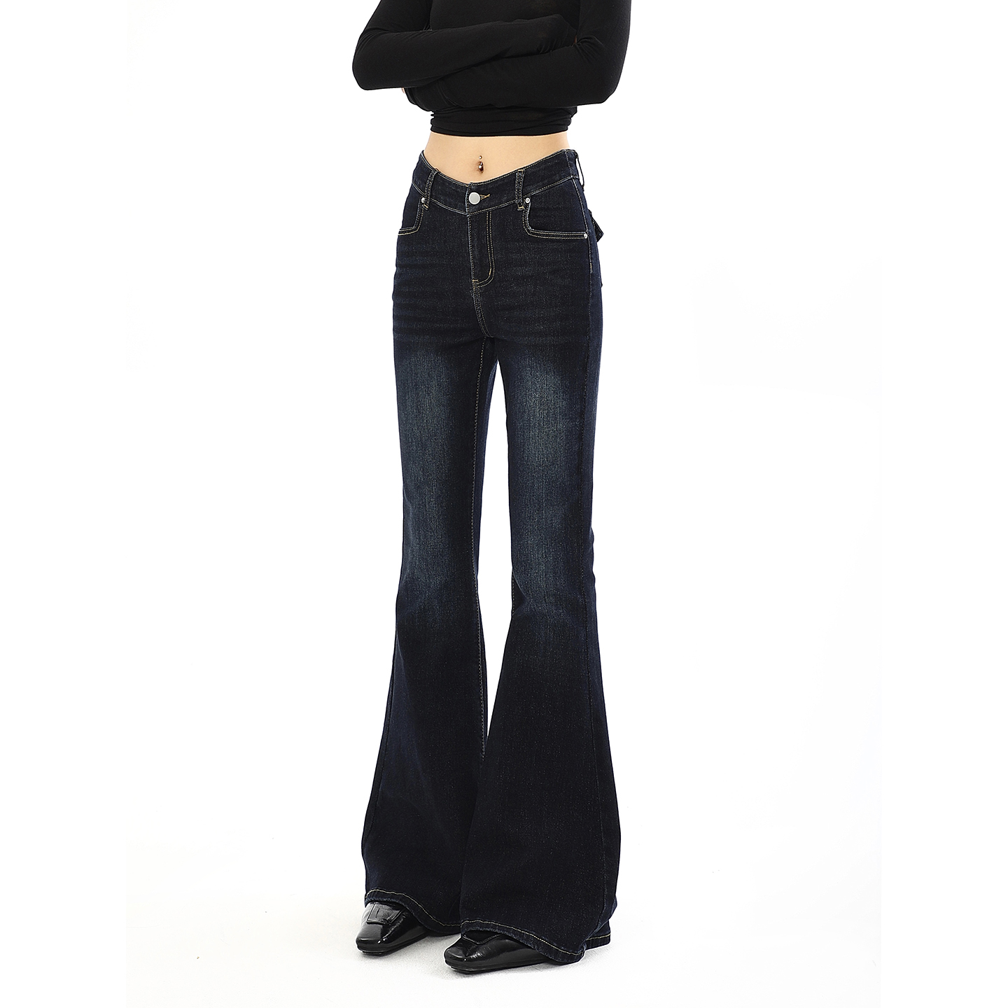 辣妹女长裤 2025新款 中高腰牛仔裤 王家有鱼早秋复古蓝不贴腿微喇裤
