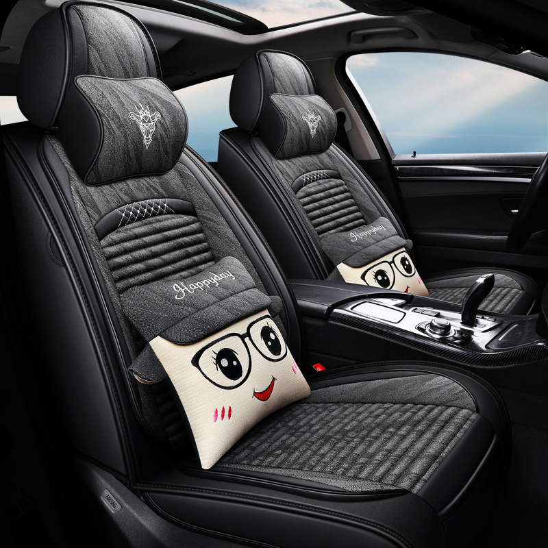 汽车坐垫全包围汽车座套四季 全包座椅套 通用荞麦皮亚麻冬车垫套装