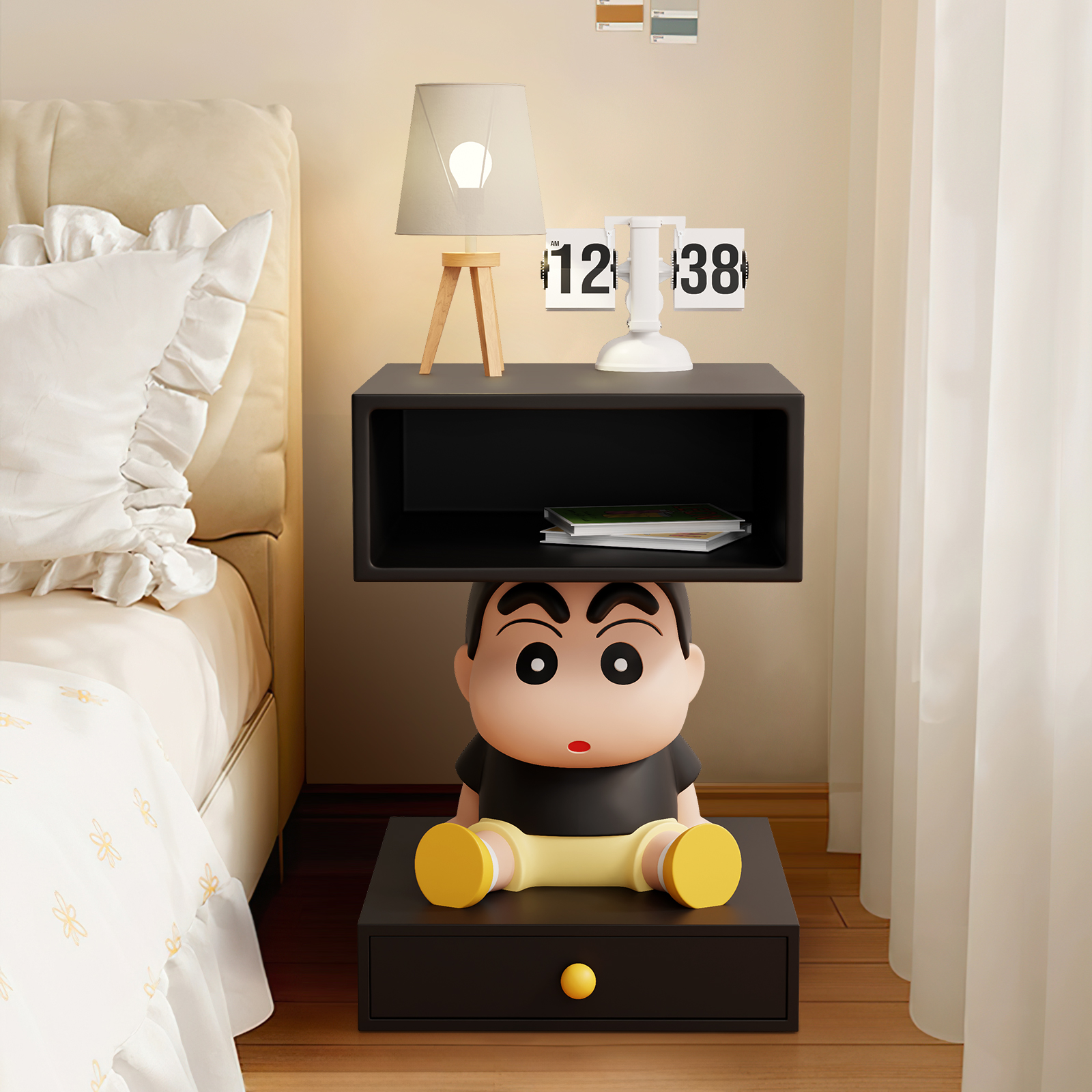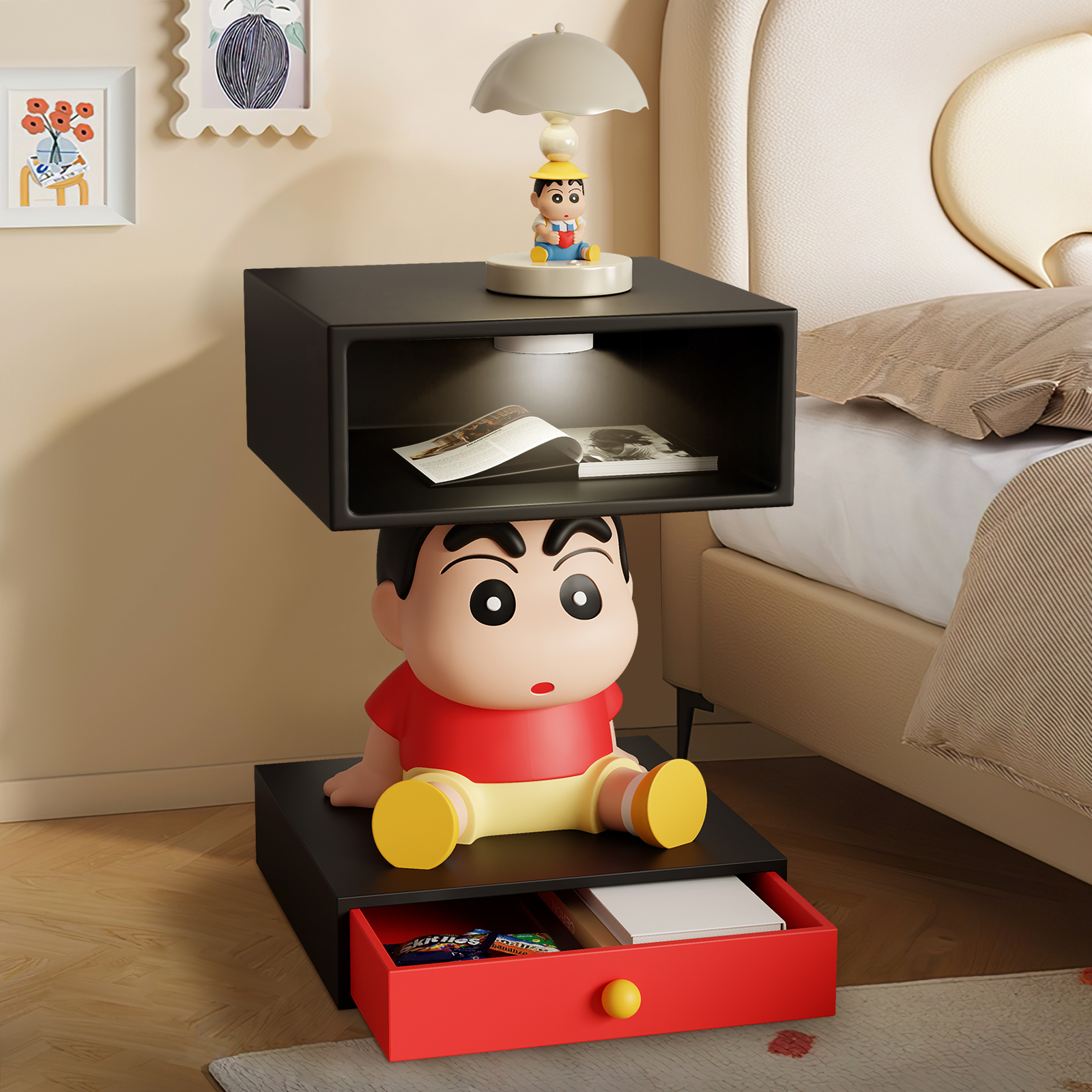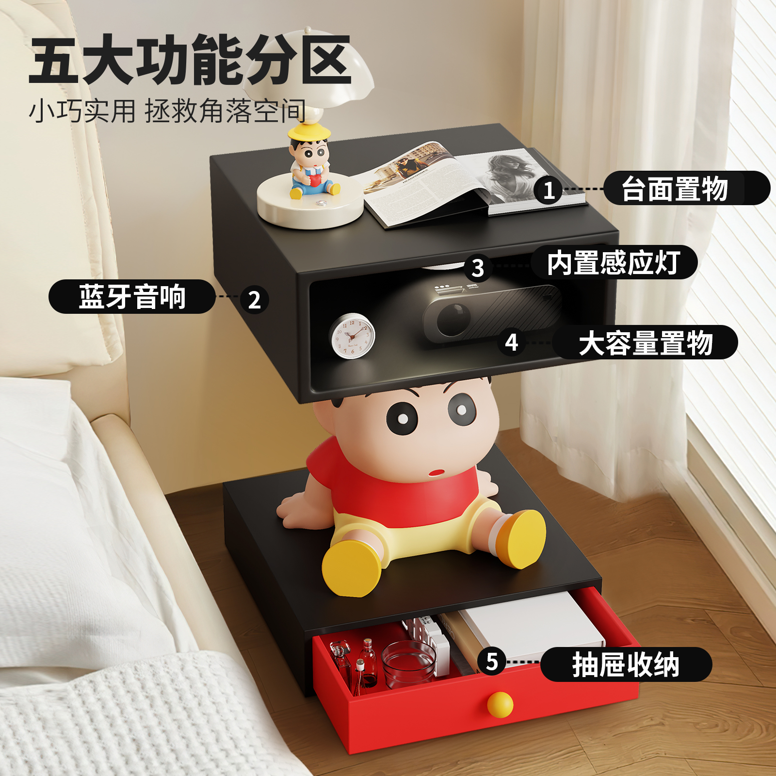 蜡笔小新电视柜落地装 饰摆件客厅轻奢高档沙发边几柜带灯床头柜子