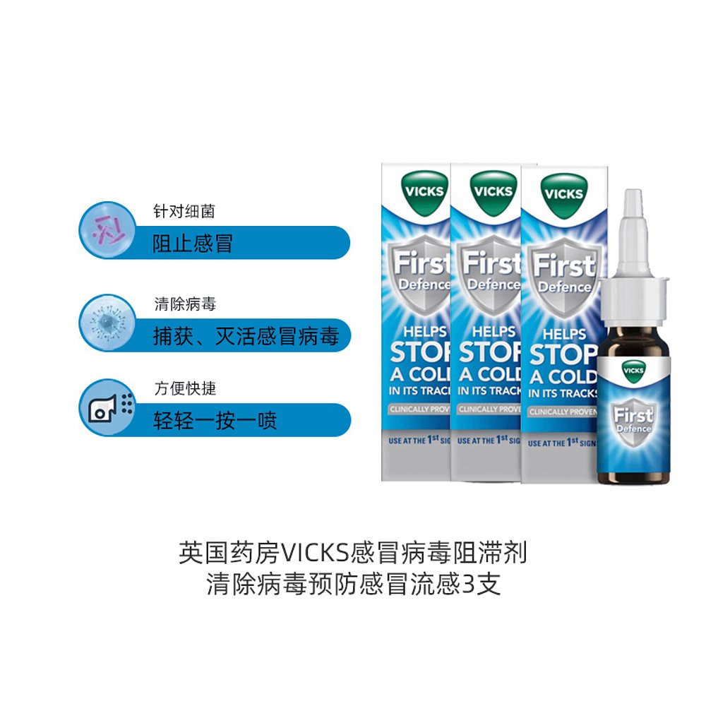 欧洲直邮Vicks感冒病毒阻滞剂3支 15ml儿童成人预防流感鼻喷雾剂