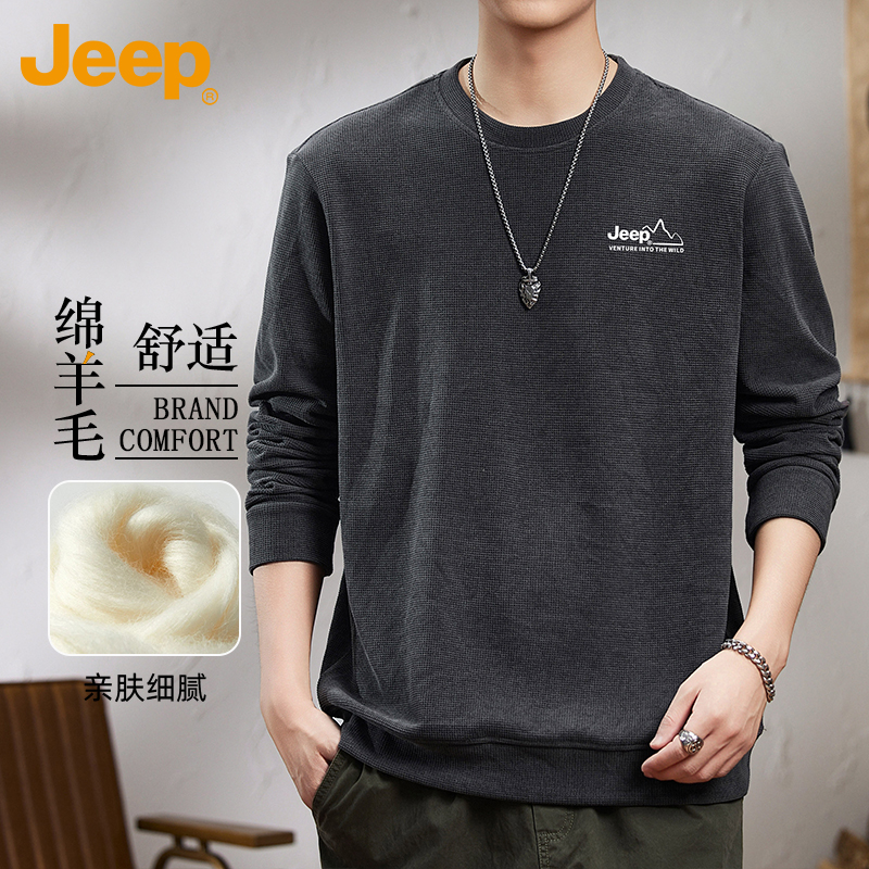 圆领重磅三角外套LF 美式 班尼路S&K系列男士 米咖色加绒卫衣男冬季