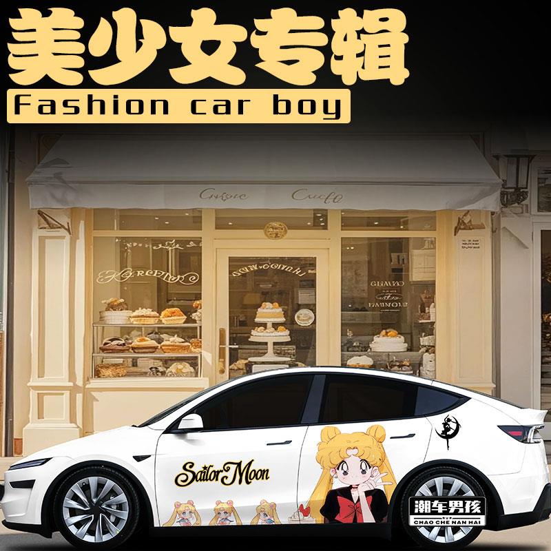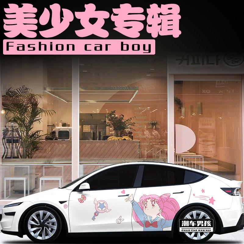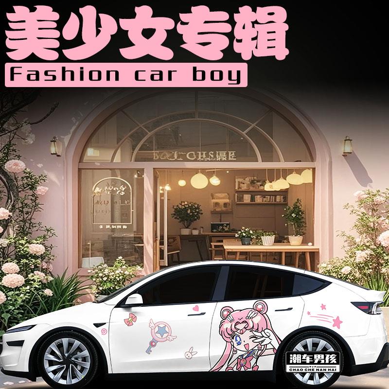 定制 美少女贴纸个性 小姐姐喜欢 特斯拉modelY极氪001车贴可爱Q版
