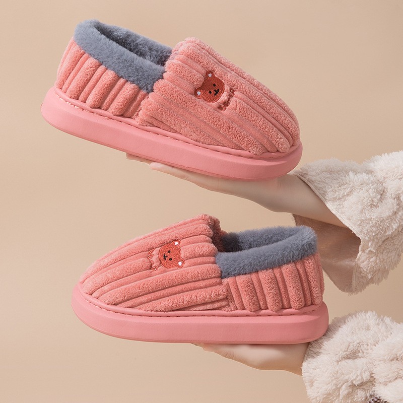家居毛绒拖鞋 男女士厚底毛毛防滑加绒加厚居家室内外穿棉拖 情侣款