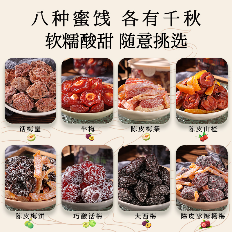 雅佳盒装 果脯话梅乌梅西梅干九制杨梅酸梅条条蜜饯零食自由组合