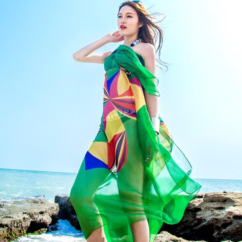 拍照披肩两用雪纺长丝巾大纱巾夏季 海边防晒沙滩巾比基尼泳衣外搭
