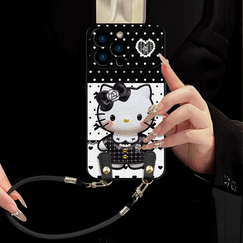 波点喵咪全型号适用于苹果17手机壳vivo华为OPPO小米保护套iphone16大视窗小羊皮新款 女镜头全包防摔高级ins