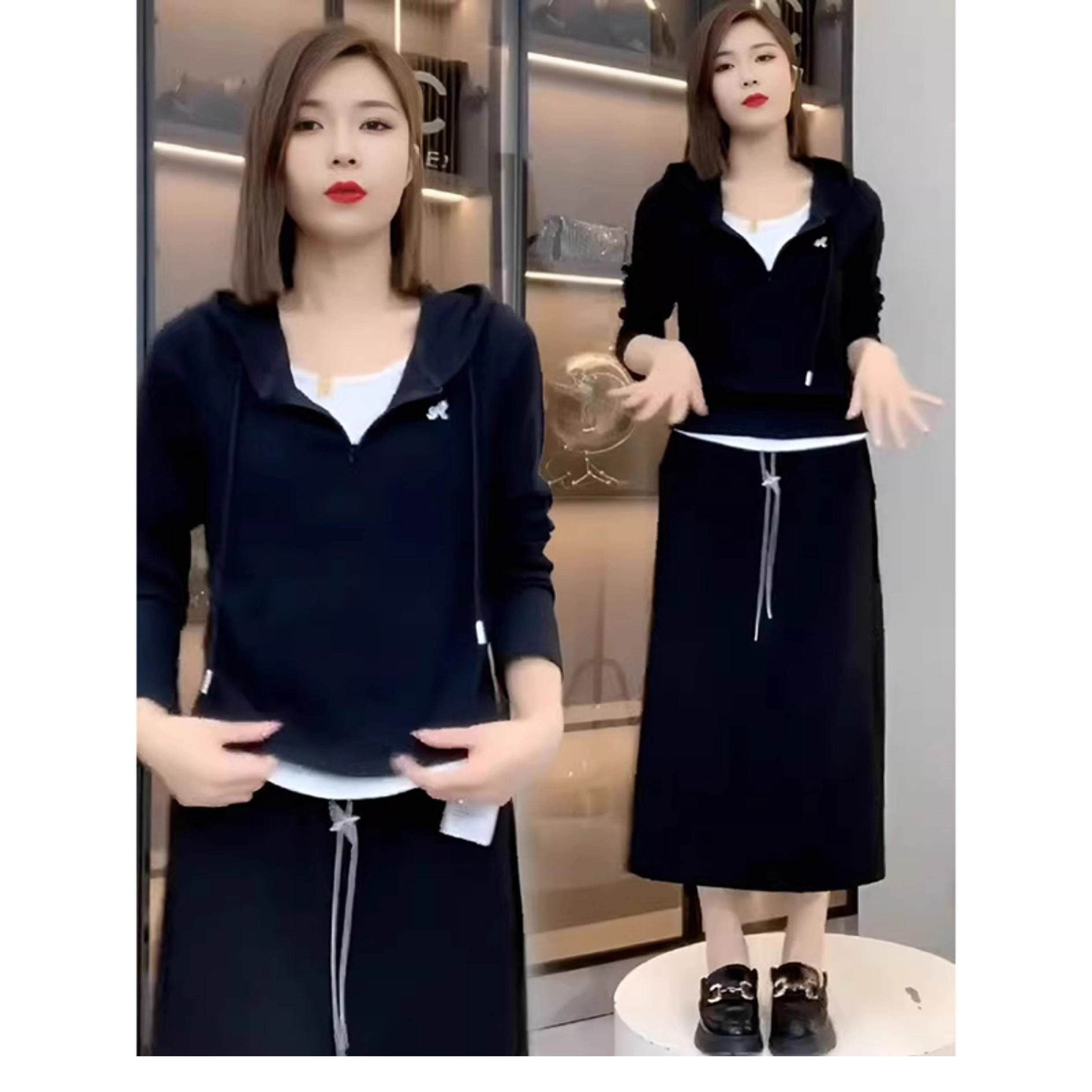 洋气连帽长袖 设计感假两件打底衫 t恤女装 新款 上衣 2025年秋季 时尚