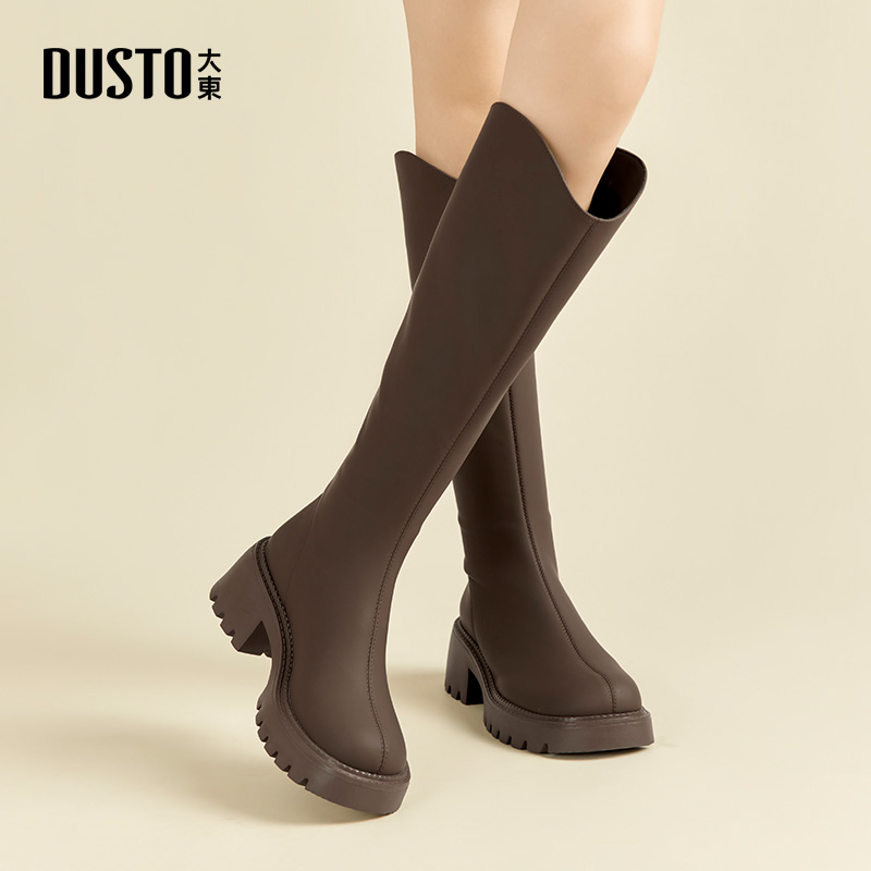 大东官方厚底长筒靴女2025新款 巨好看长靴黑色显瘦靴子骑士靴 秋季
