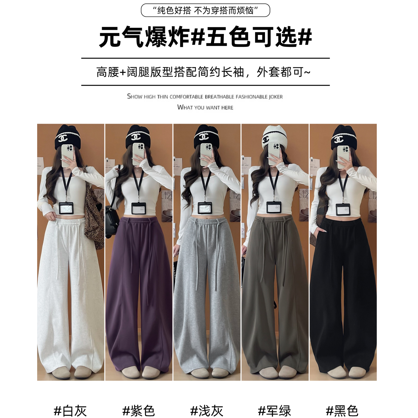 休闲秋冬阔腿裤 高腰直筒宽松香蕉卫裤 子 女春秋2025新款 灰色运动裤