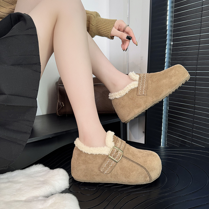 女2025新款 厚底复古乐福鞋 爆款 加绒加厚棉鞋 百搭冬季 内增高勃肯鞋