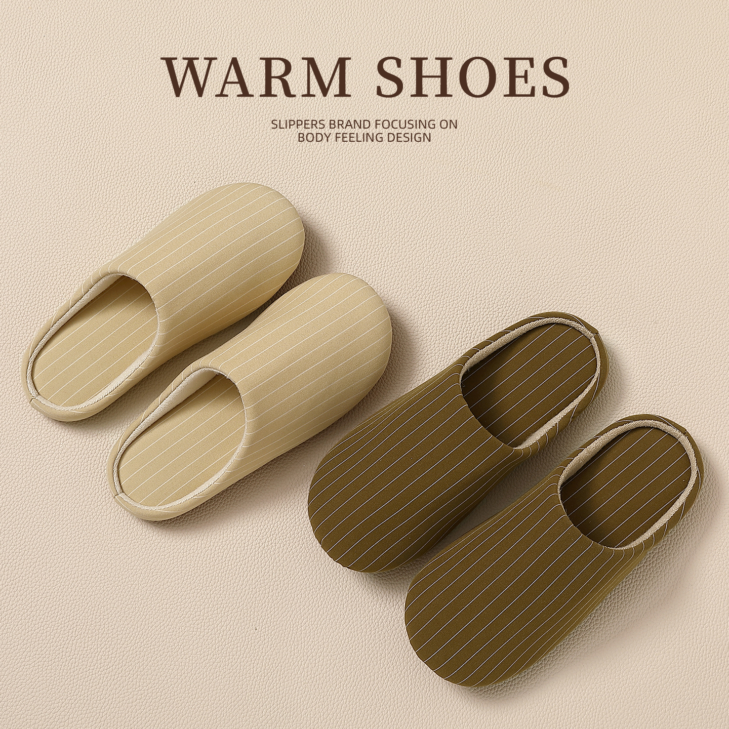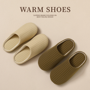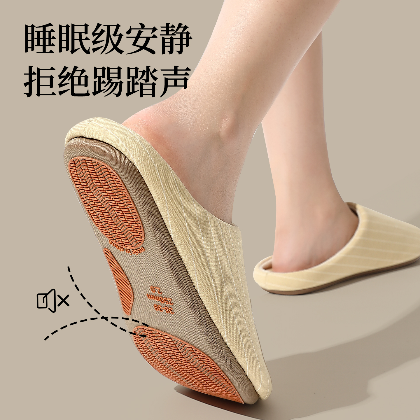 室内家居地板防滑软底办公室待客拖鞋 女士秋冬季 男 静音棉拖鞋 日式