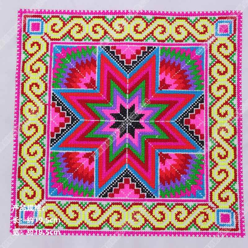 云南民族绣花厂家直销苗族彝族八角花十字绣方块舞台服装 辅料