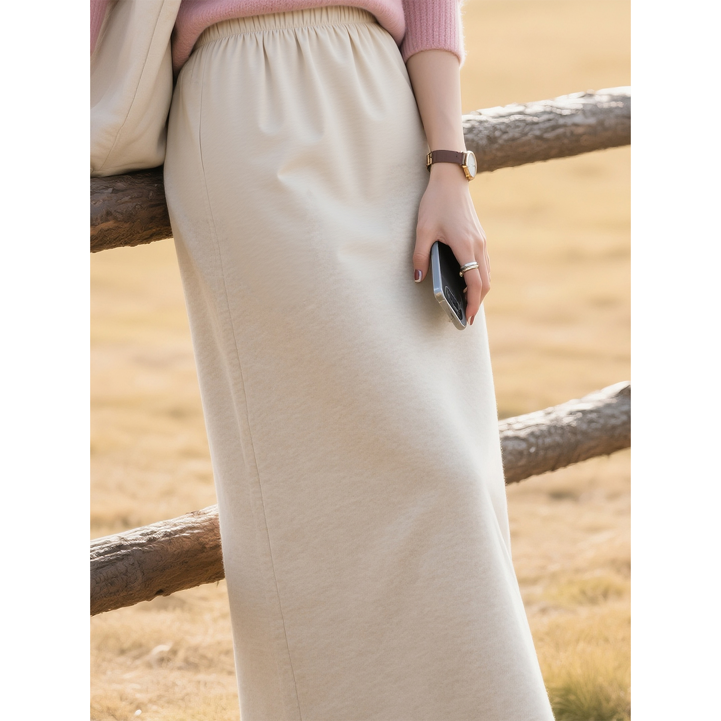 卡其色糯米裙中长款 慵懒风半身裙2025秋冬遮肉显瘦伞裙a字裙森女