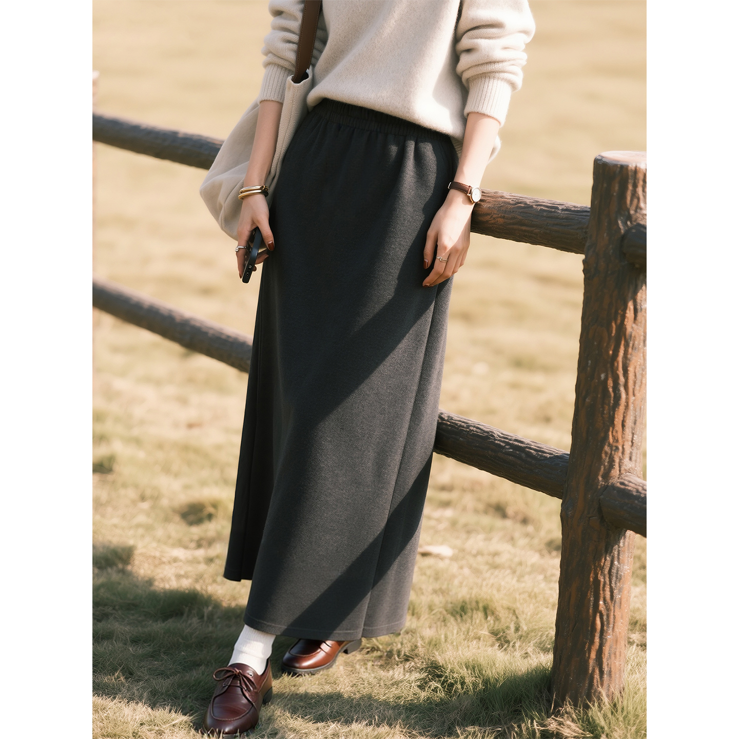黑色羊毛呢半身裙女春秋2025新款 长裙直筒气质秋冬针织a字包臀裙
