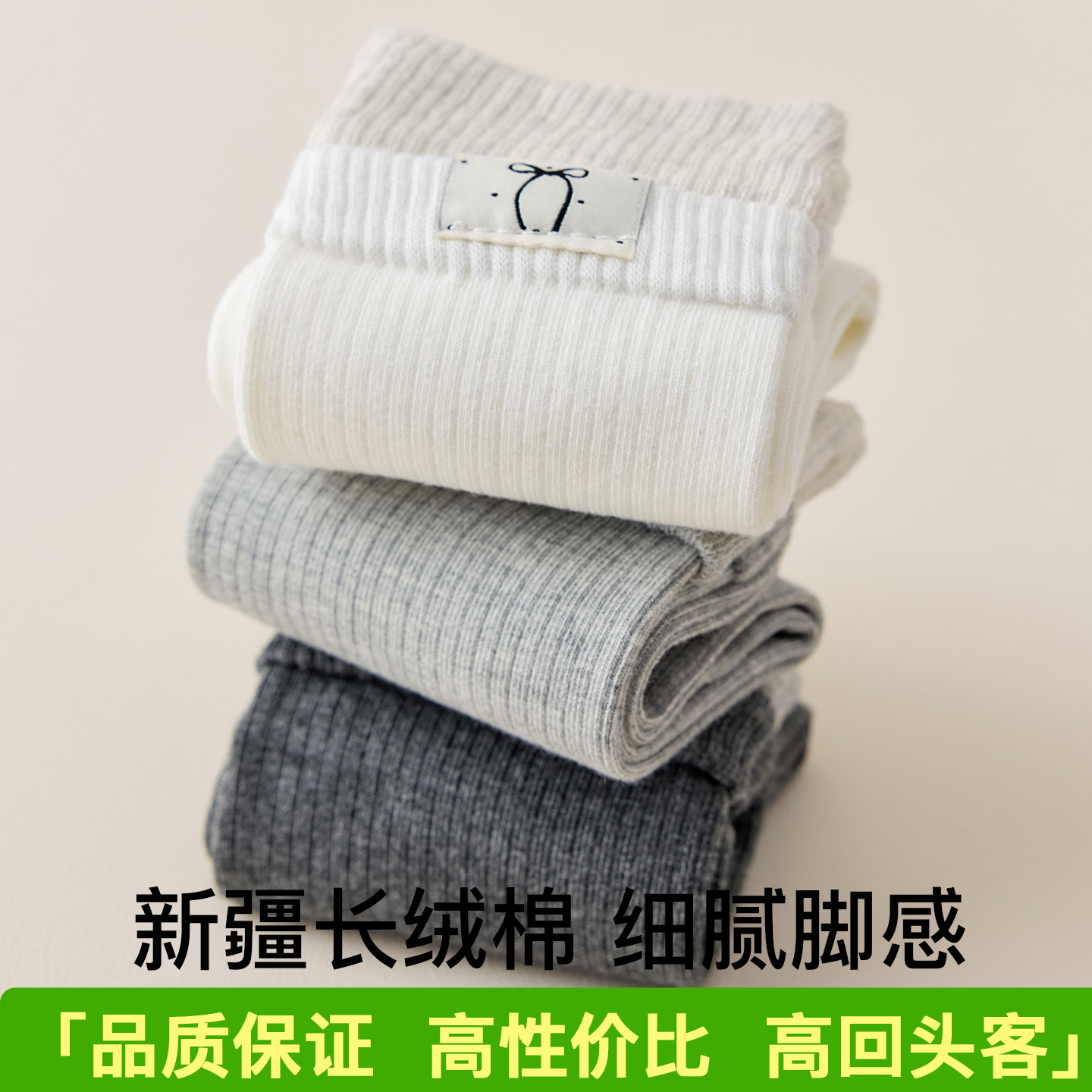 双罗口袜子女款 春秋纯棉纱线中筒袜布标蝴蝶结堆堆袜抗菌防臭长袜