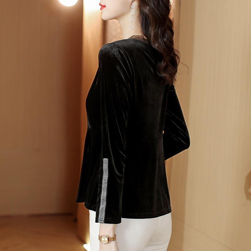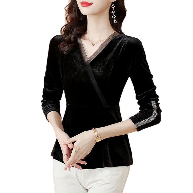v领小衫 女士2025年新款 内搭上衣1012z t恤打底衫 秋冬金丝绒长袖