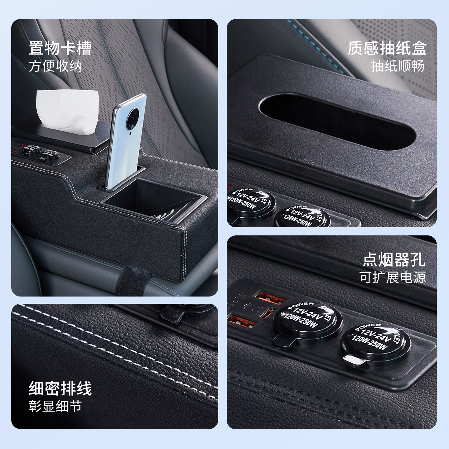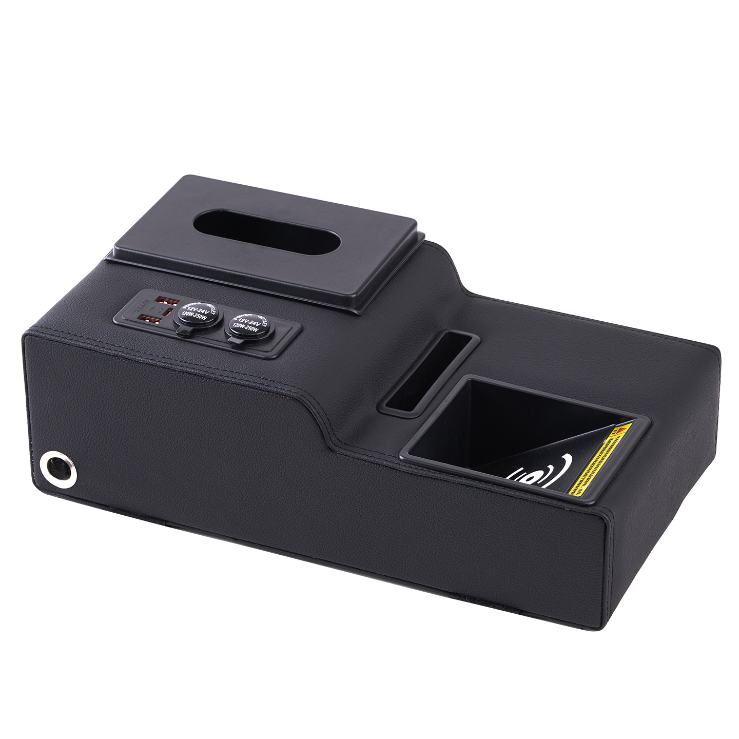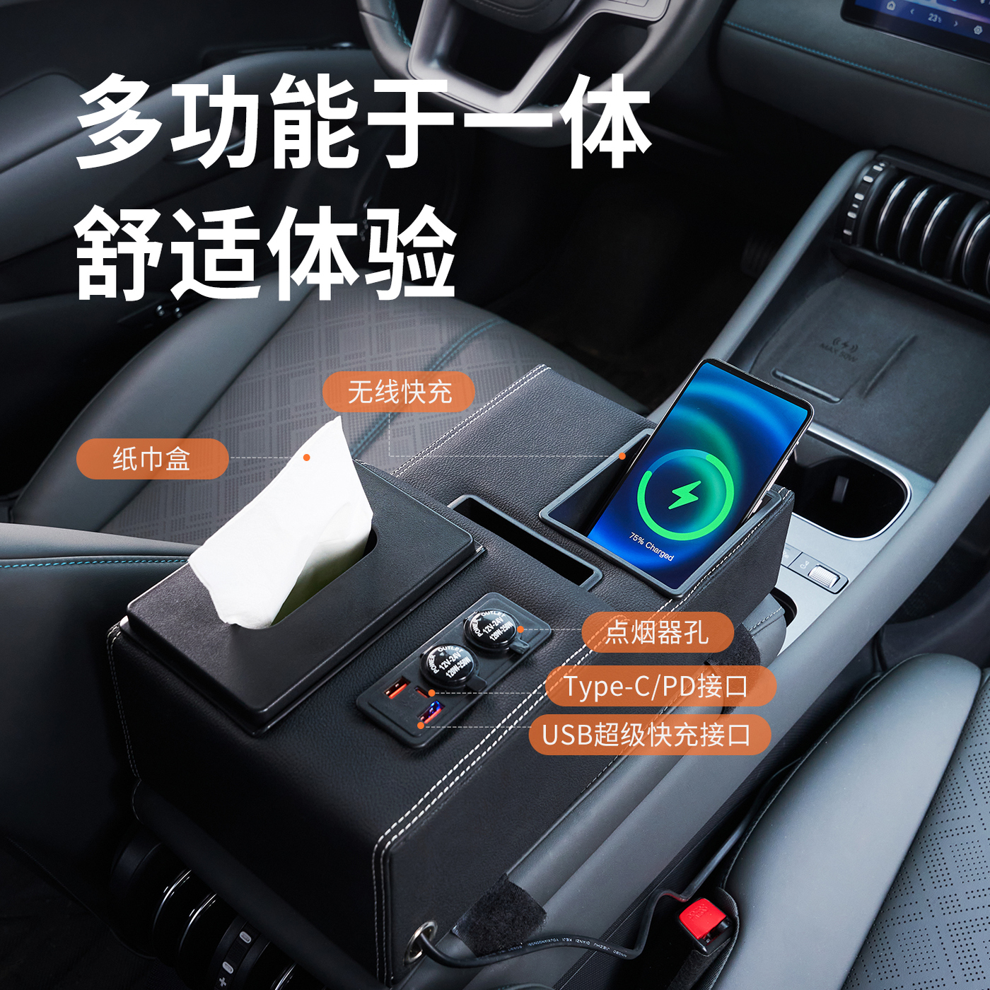 新款 汽车中央扶手箱垫多功能车载纸巾盒收纳盒无线充四合一增高垫