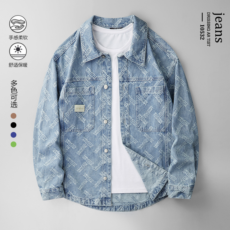 新款 森马夹克男2024秋季 复古牛仔外套宽松潮流 商场同款 森柔牛仔