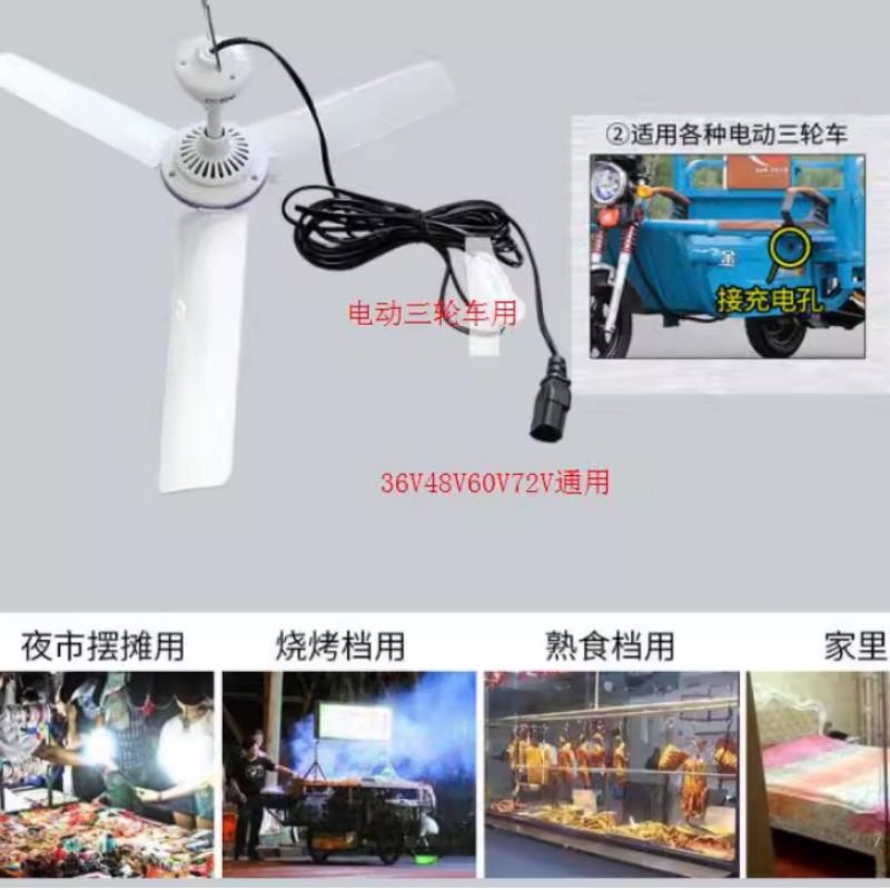 12V太阳能板直流24V48V60V电瓶电动三轮车载挂吊扇调速驱蚊电风扇