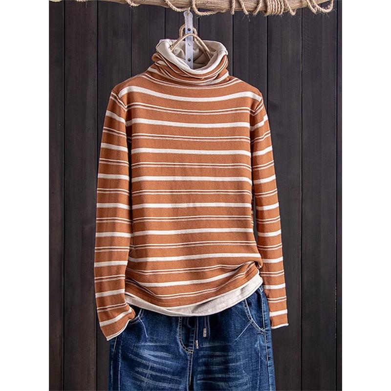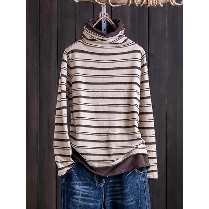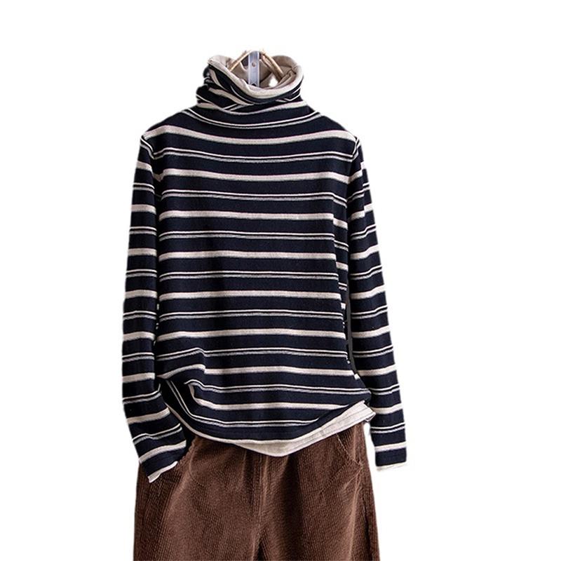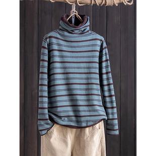 显瘦高领打底1009u 洋气修身 秋冬黑色堆堆领条纹长袖 T恤女2025新款