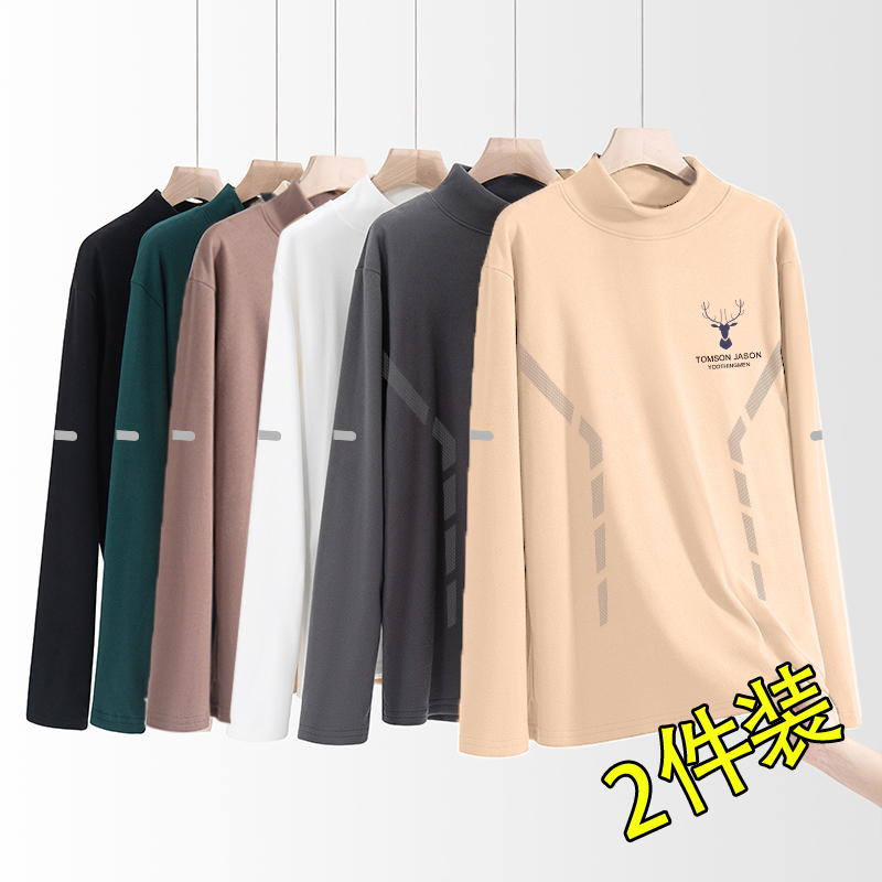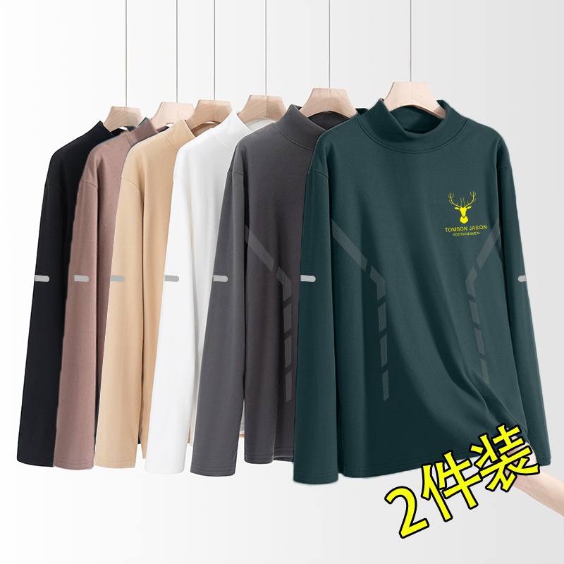 打底衫 休闲男女款 翻领加厚保暖上衣 T恤男修身 秋冬双面绒高领长袖