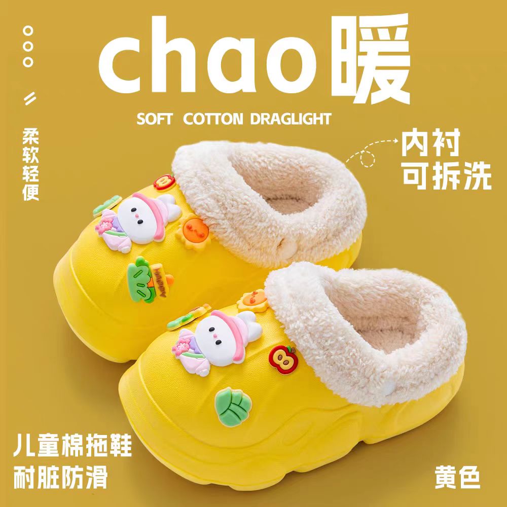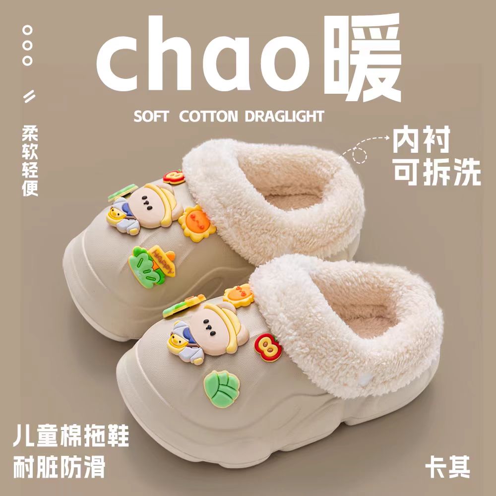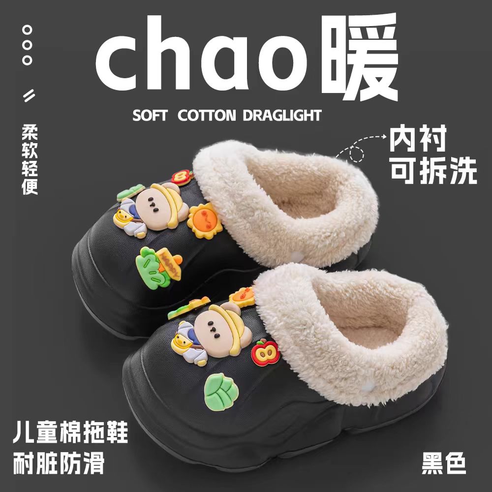 保暖女童拖鞋 加绒加厚男童室内家居儿童棉鞋 防水 秋冬季 宝宝棉拖鞋