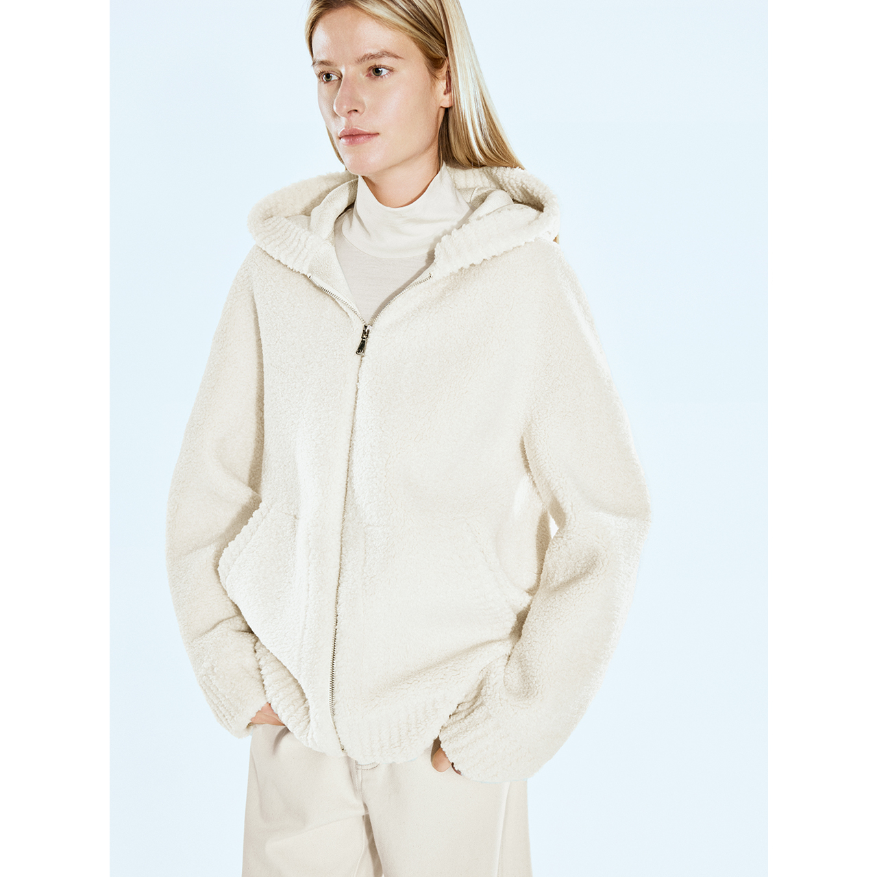 新款 2025年冬季 环保羊羔绒连帽外套女宽松 赵今麦同款 COVERINS
