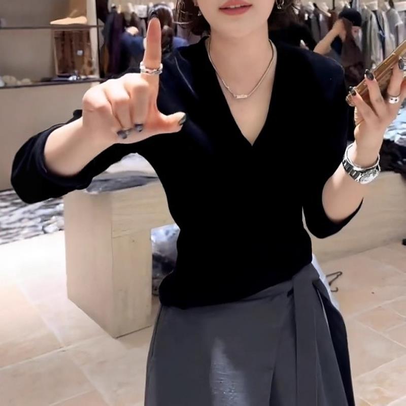 t恤新款 黑色v领丝绒正肩长袖 胖mm显瘦内搭打底1010z 女装 秋冬大码