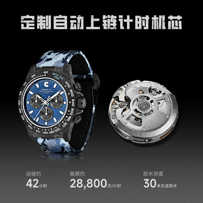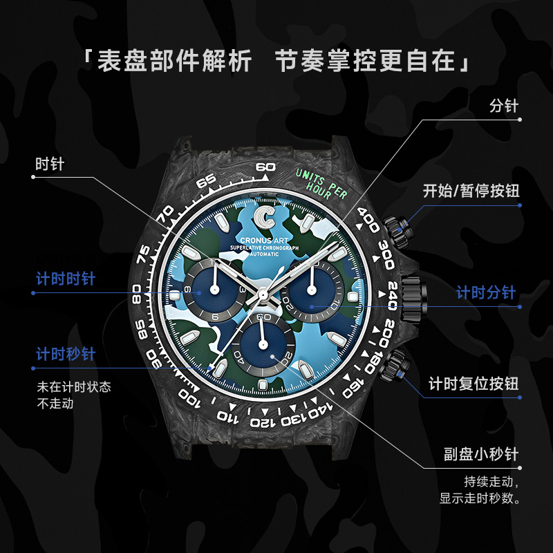 cronusart克洛斯碳纤维潮流迷彩男士 机械手表全自动镂空腕表 男款