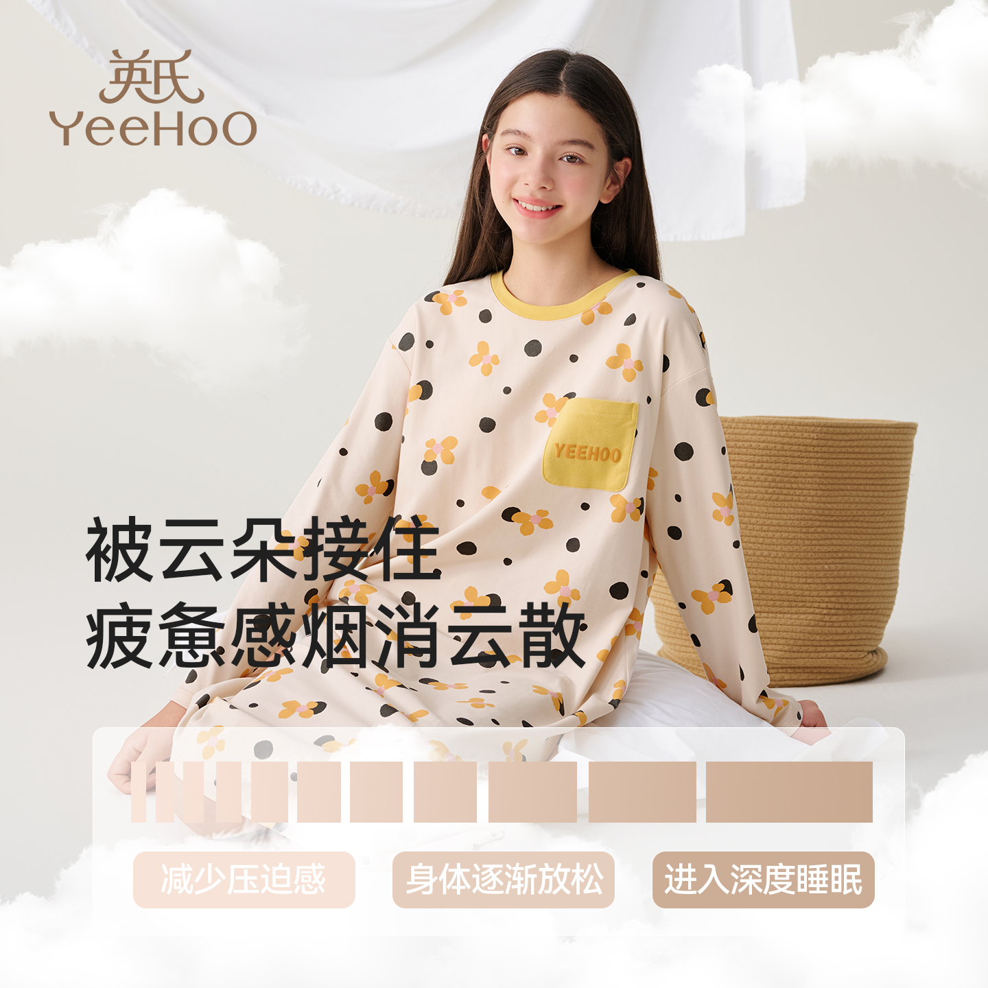 英氏女童睡裙带胸垫女孩睡衣新款 家居服青少年裙子少女连衣裙 长袖