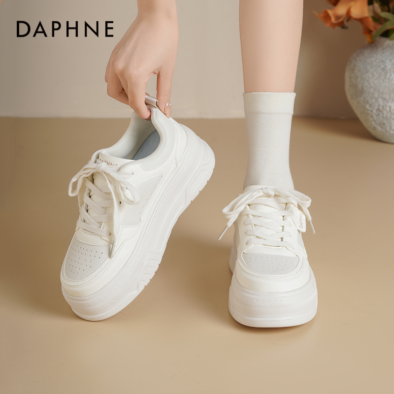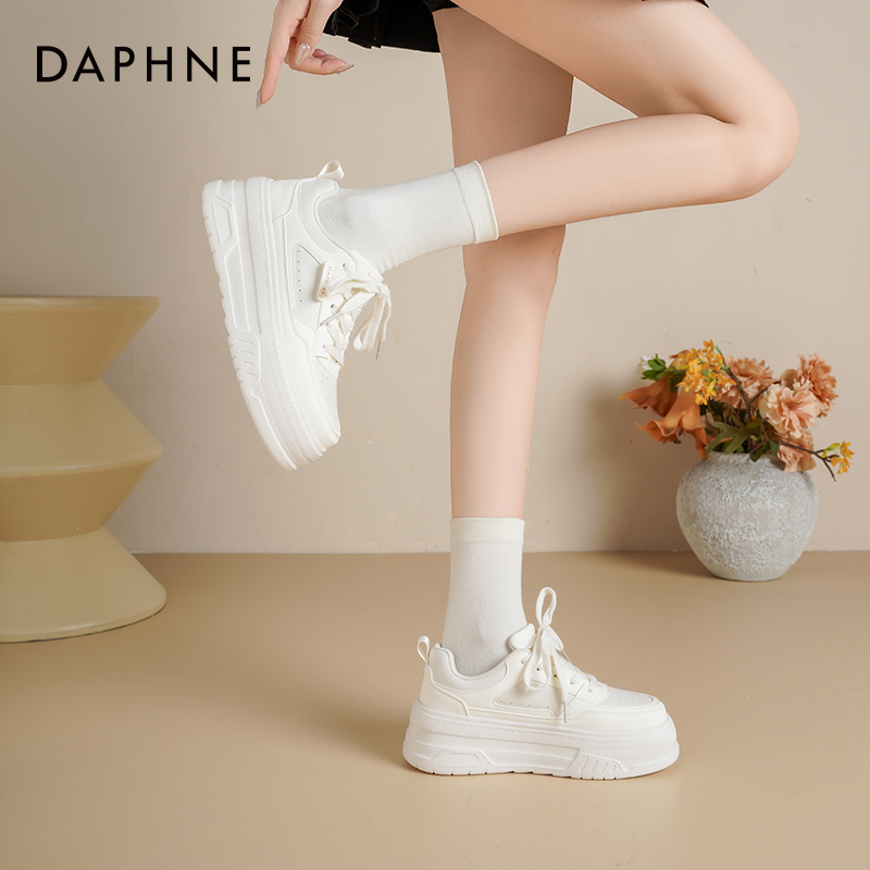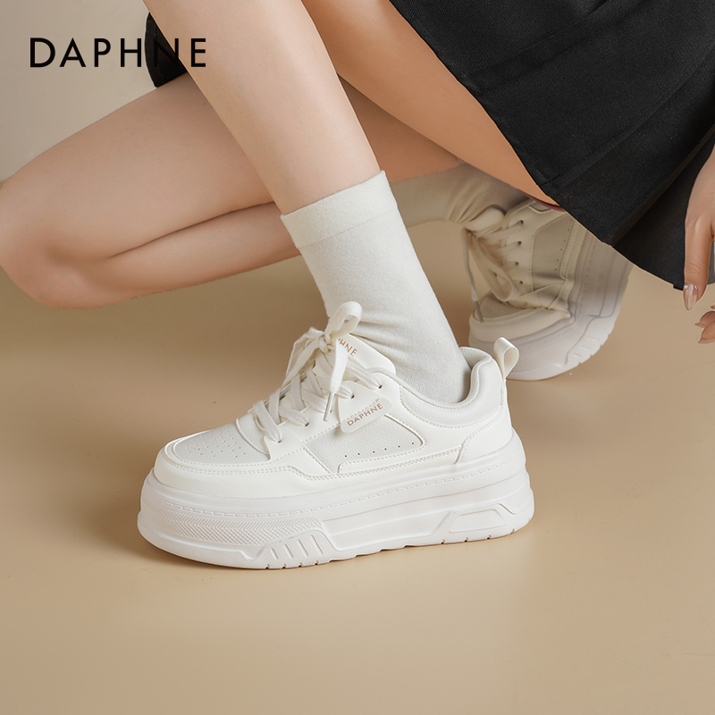 秋季 2025新款 增高女鞋 轻便厚底板鞋 子 达芙妮小白鞋 透气休闲鞋 女款