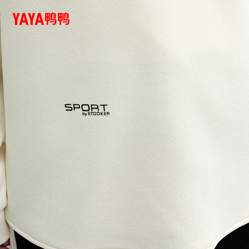 简约宽松连帽拼色保暖针织绒衫 鸭鸭休闲卫衣女2025年冬新款 时尚