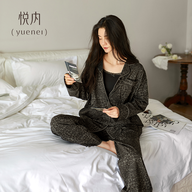 家居服休闲时尚 纯棉长袖 豹纹高级感可外穿出门 春秋季 悦内睡衣女款