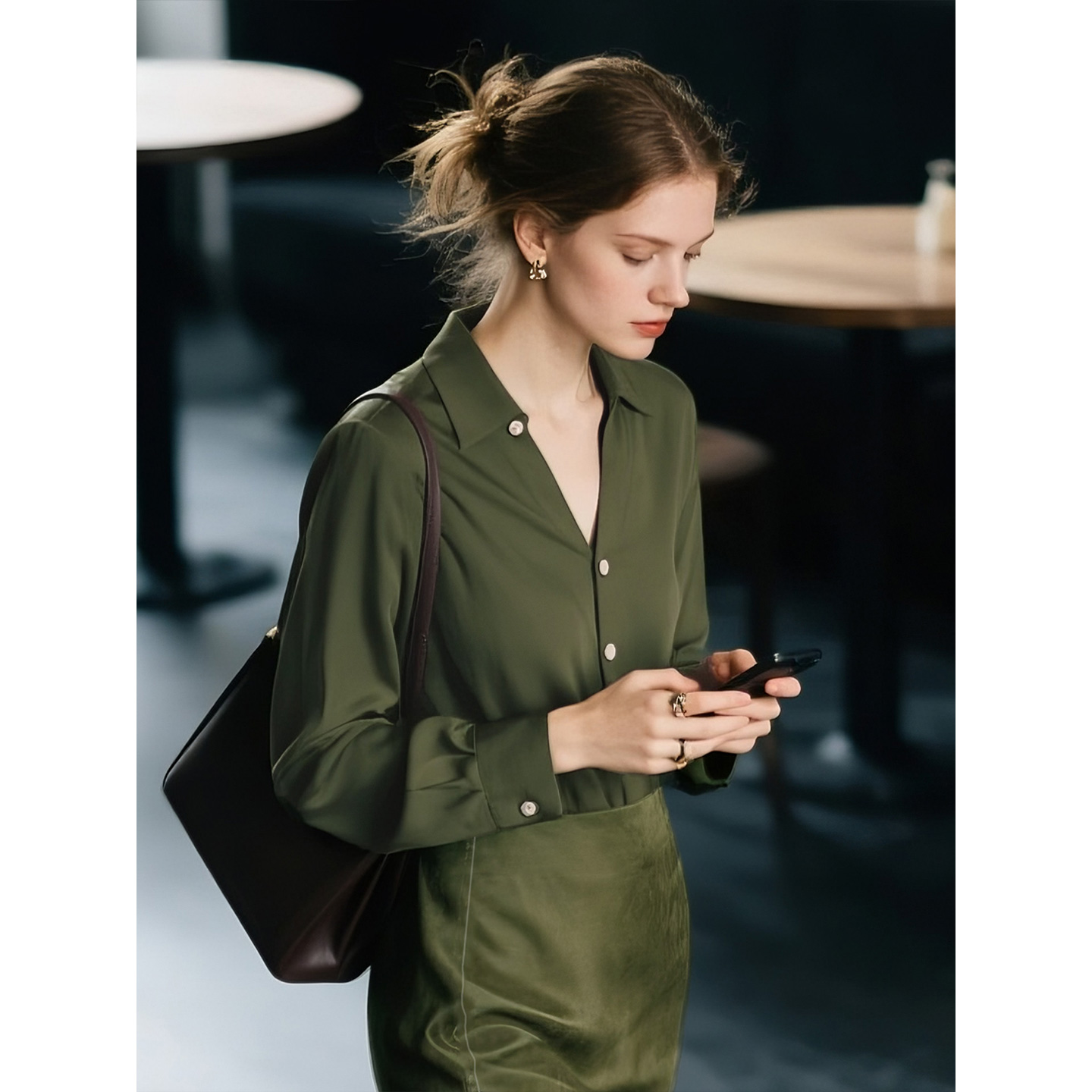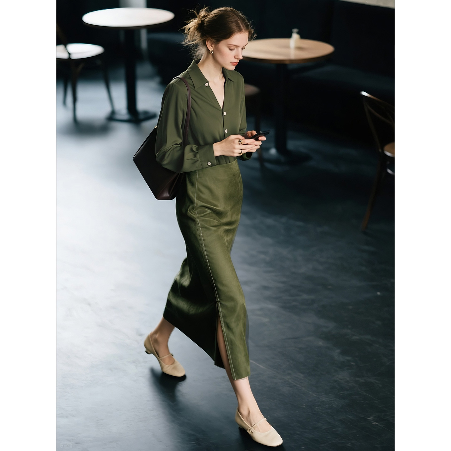 套装 巨好看 女2025年秋季 法式 早秋半身裙两件套 新款 深绿色衬衫