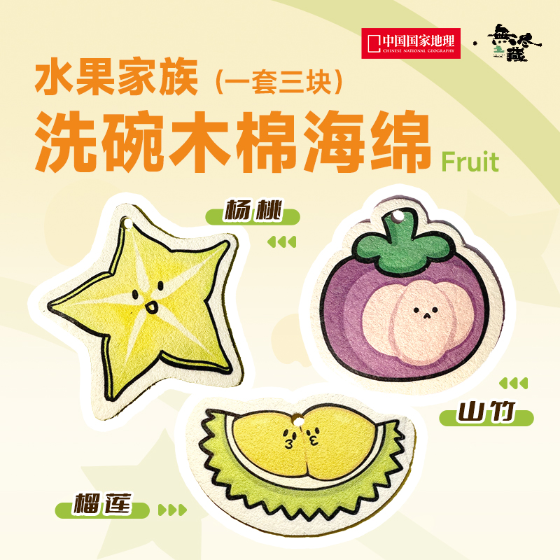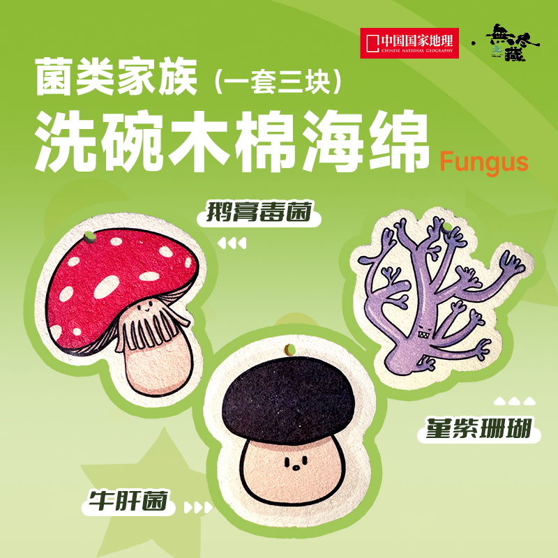 中国国家地理x无尽藏|原创吸水木浆海绵清洁百洁布厨房洗碗巾家务刷锅 水果家族造型 菌类