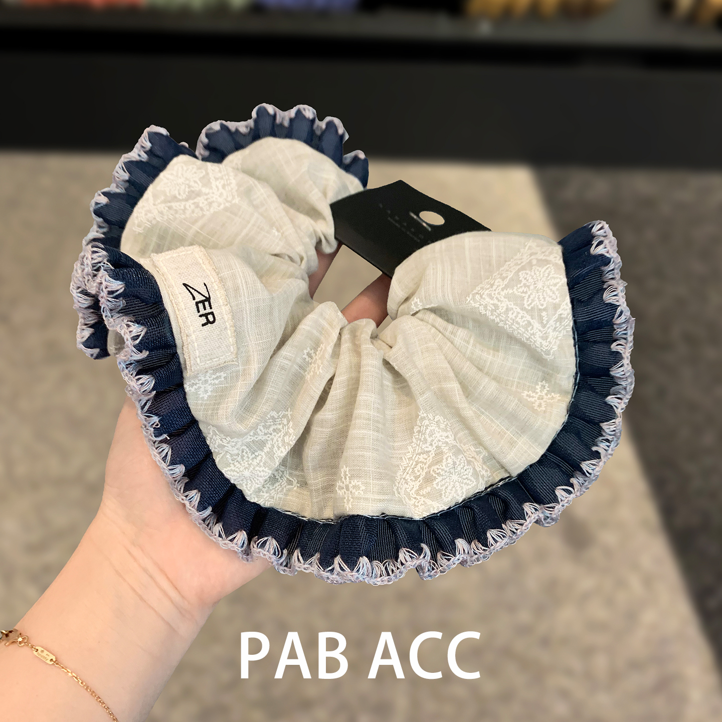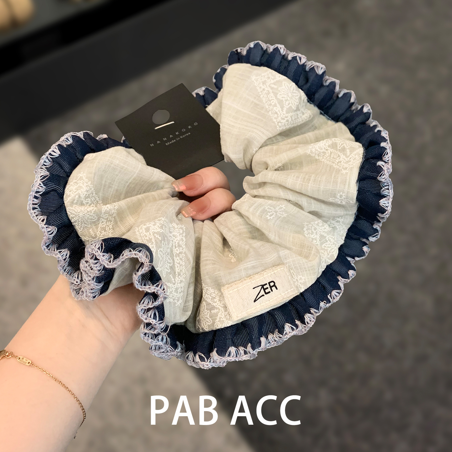 韩国网红极简慵懒风暗纹牛仔花边肥肠圈高级感懒人盘发圈弹力头饰