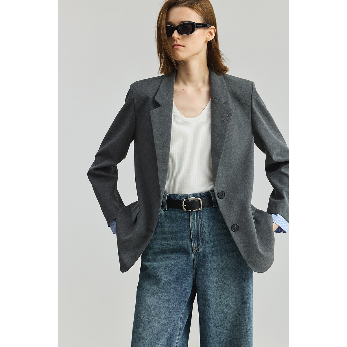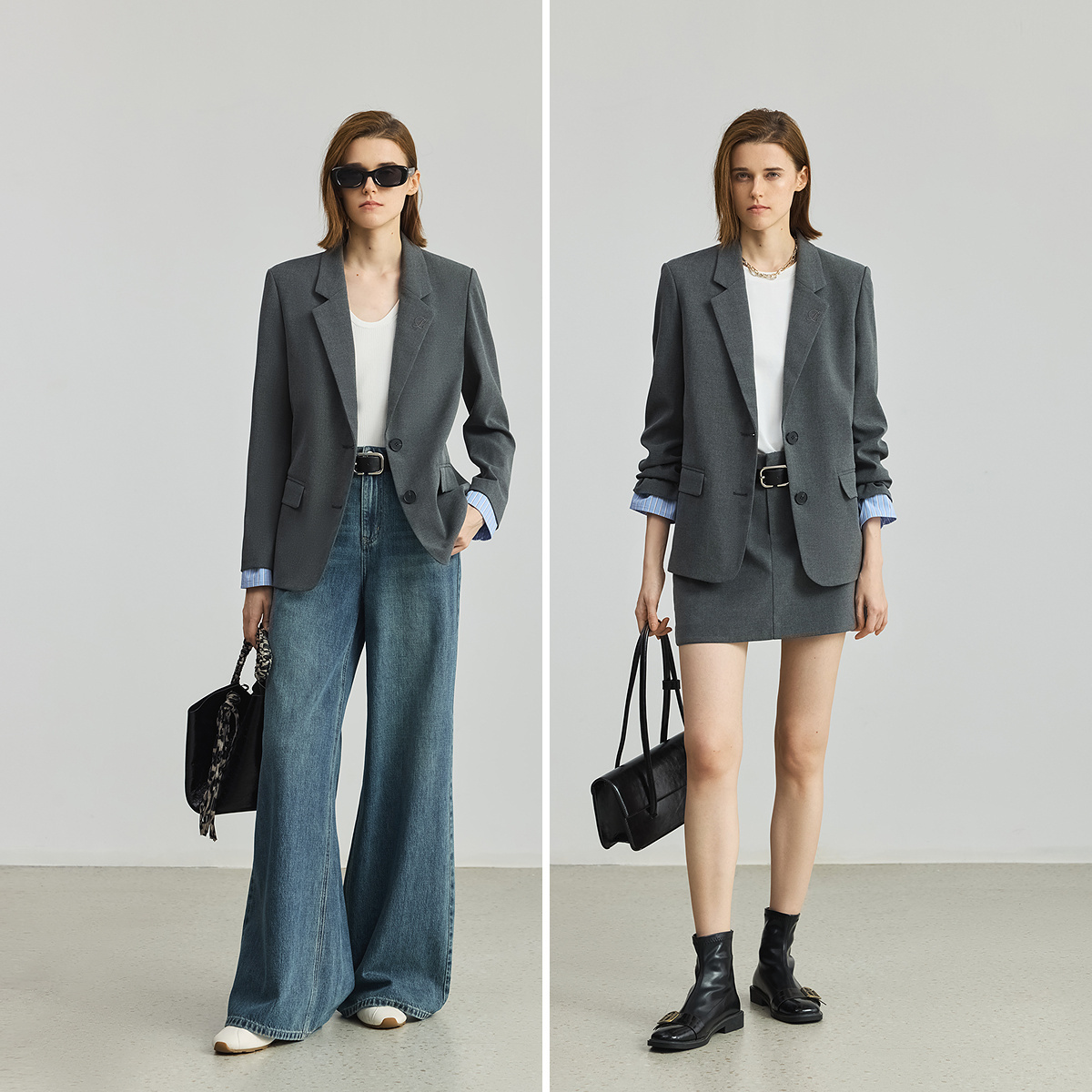 外套女西服 休闲通勤西装 LILY2025秋新款 格雷系学院风可拆卸条纹袖