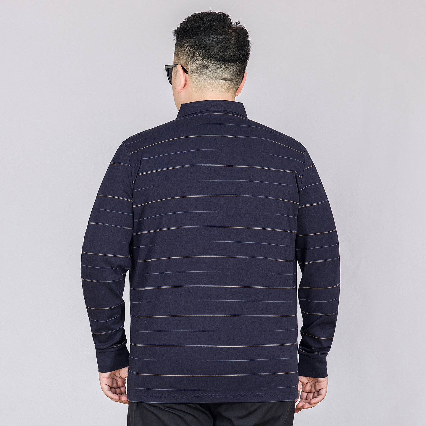 加肥大码 T恤男士 秋季 新款 中年爸爸装 棉质polo衫 宽松条纹翻领长袖
