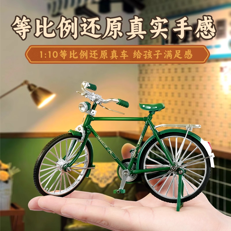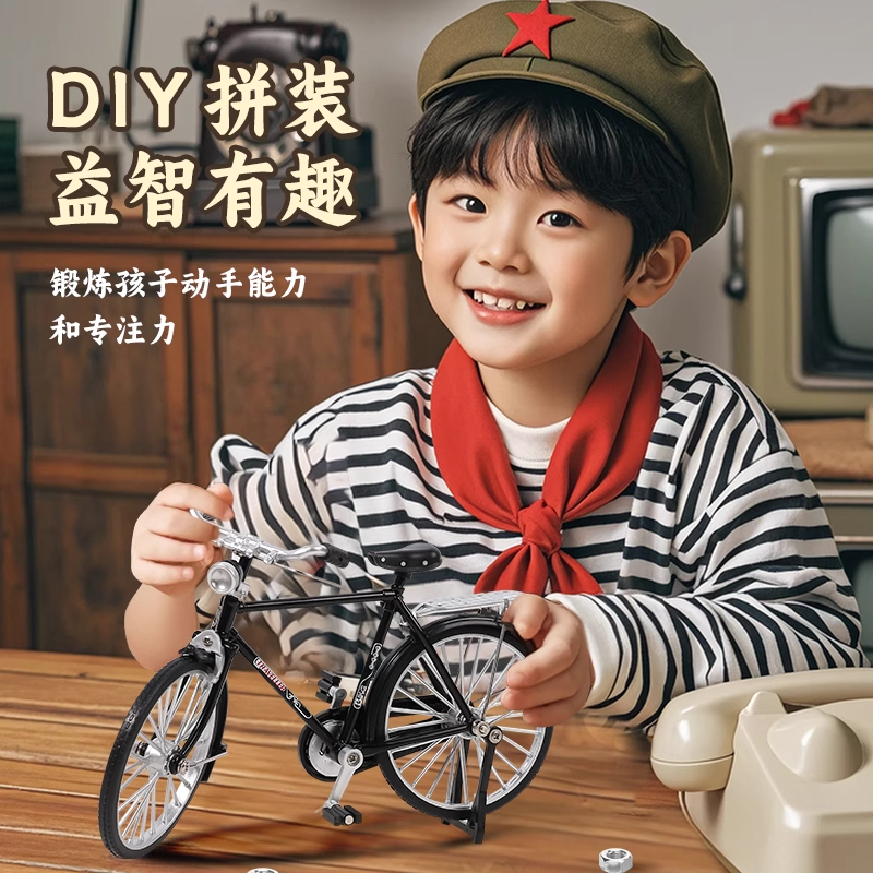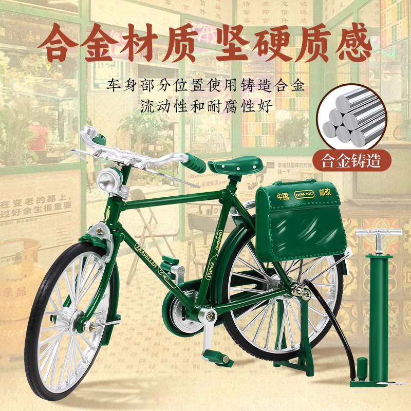 合金二八大杠自行车拼装 邮政复古单车摆件D8 模型玩具手工diy老式