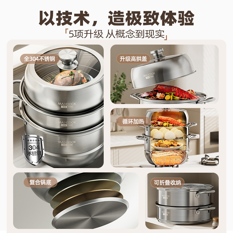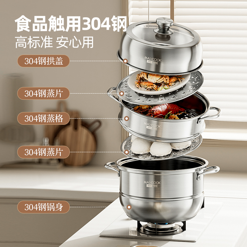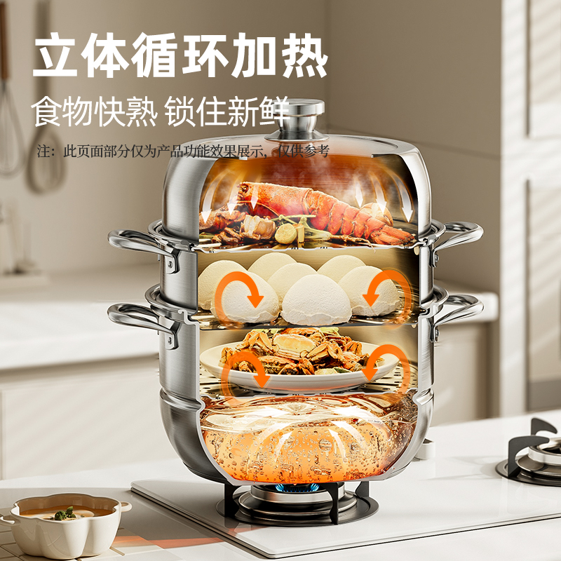 304不锈钢蒸锅家用2025新款 蒸锅带蒸屉蒸笼格煲汤三层蒸锅大容量