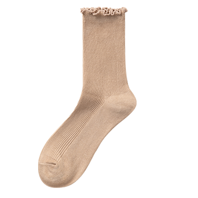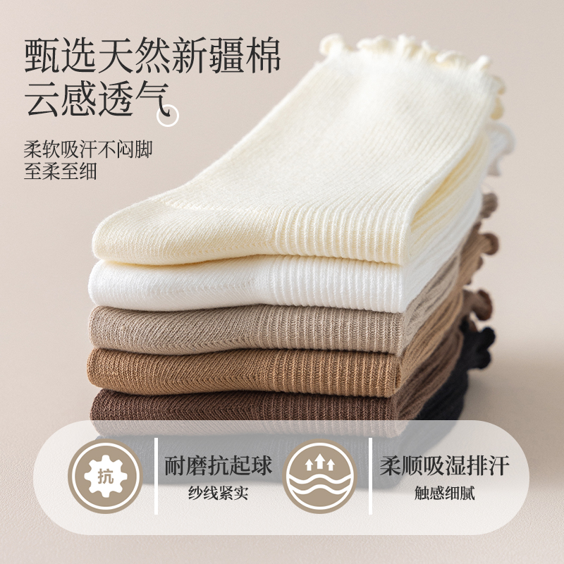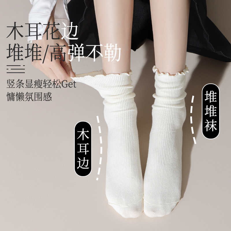 白色花边袜子女春秋款 纯色堆堆袜木耳边日系ins潮防臭秋冬长筒袜