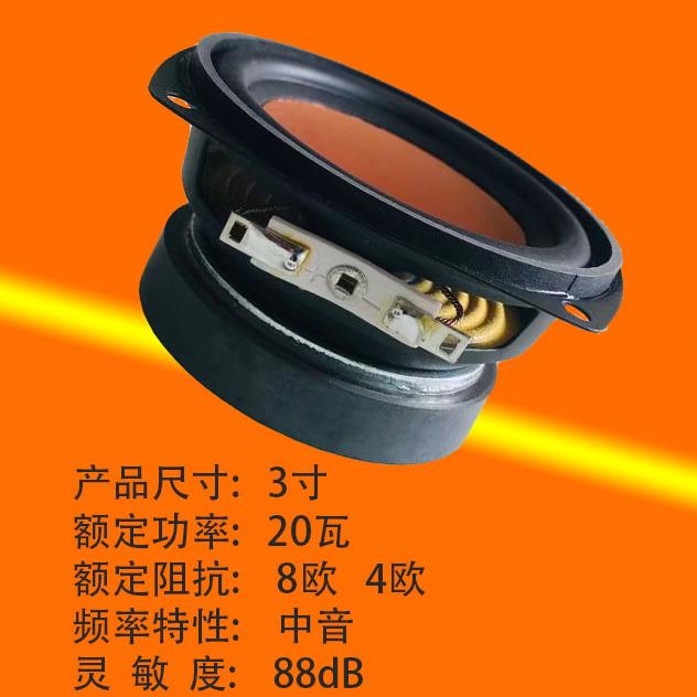 8欧3寸20瓦扬声器 橡胶边全频家用音响喇叭汽车喇叭中低音单元