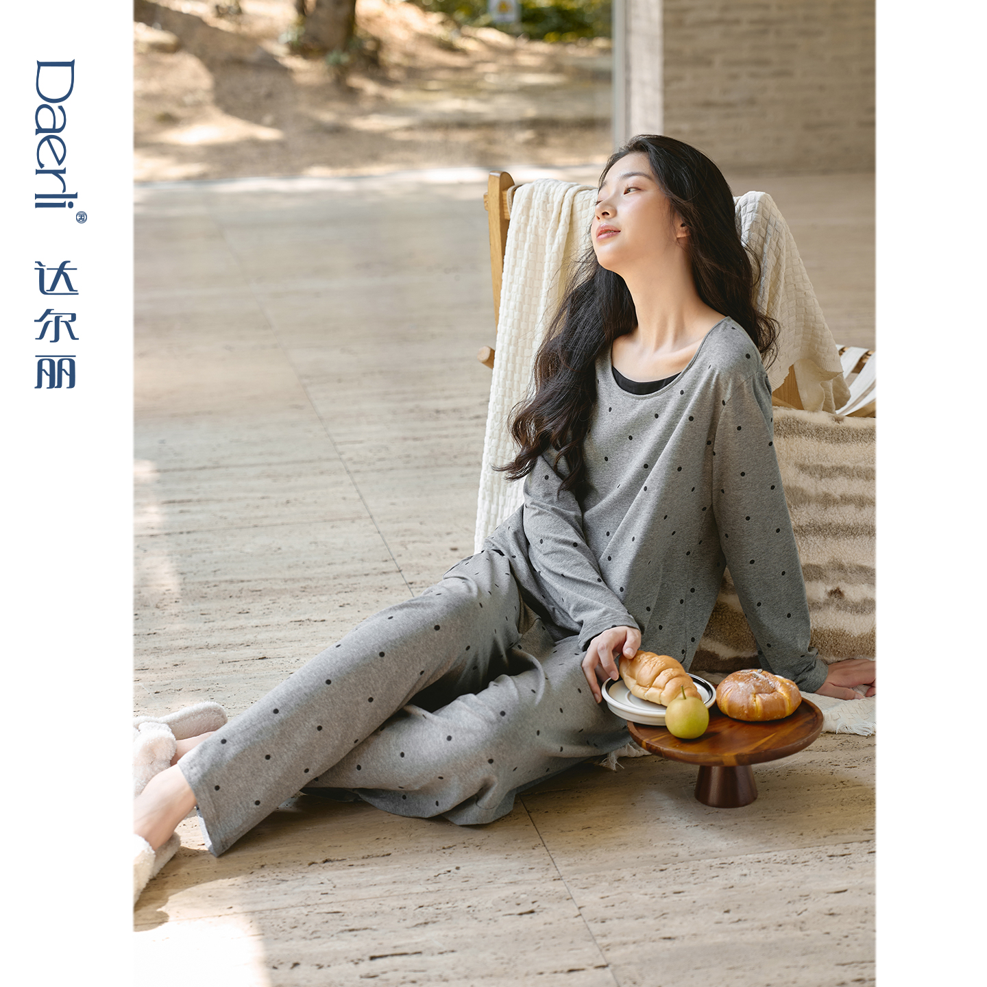 秋季 套装 纯棉长袖 华夫格时尚 家居服休闲狗大码 悦内睡衣女春秋款