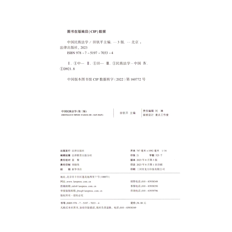 社新华书店正版 田钒平主编高等法律教材法律出版 第三版 中国民族法学