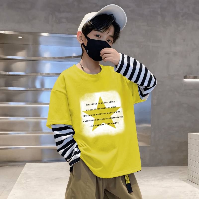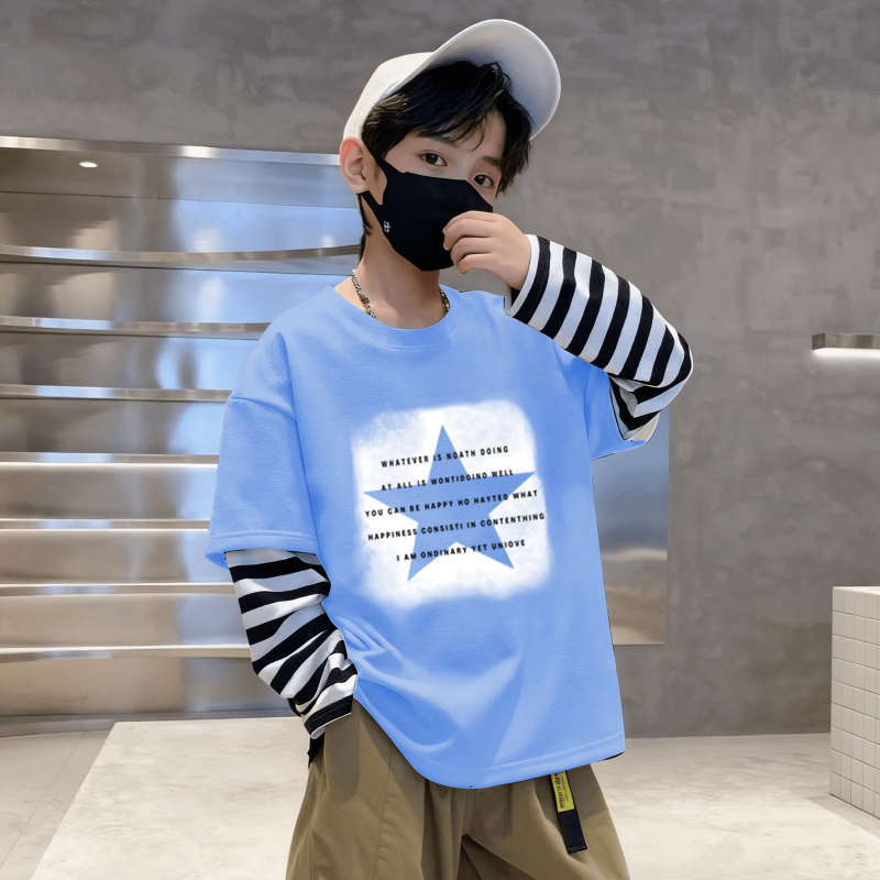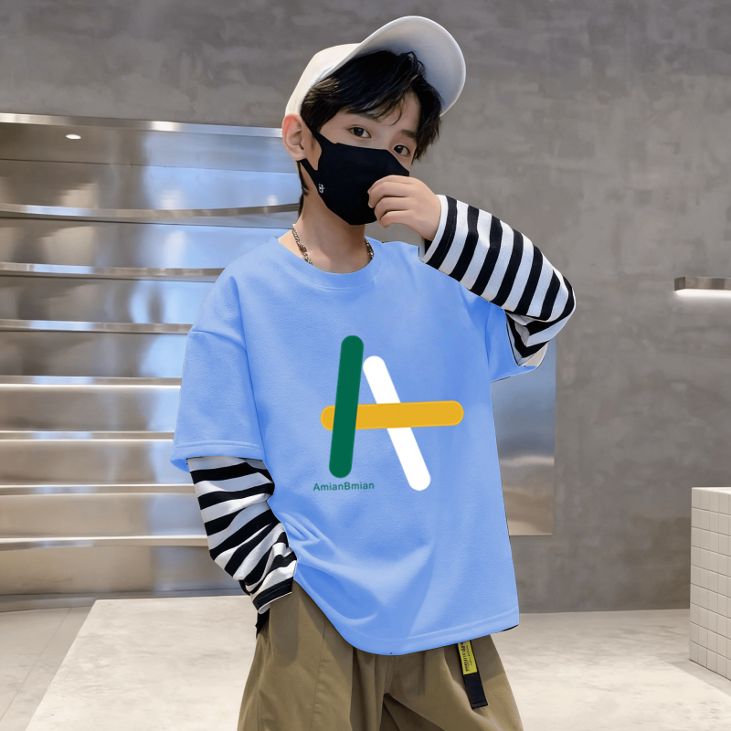 男童长袖 男宝宝纯棉百搭上衣帅气套头假两件潮T恤 T恤2025春秋新款