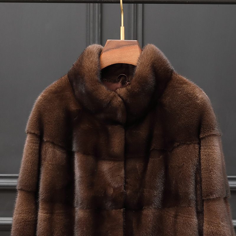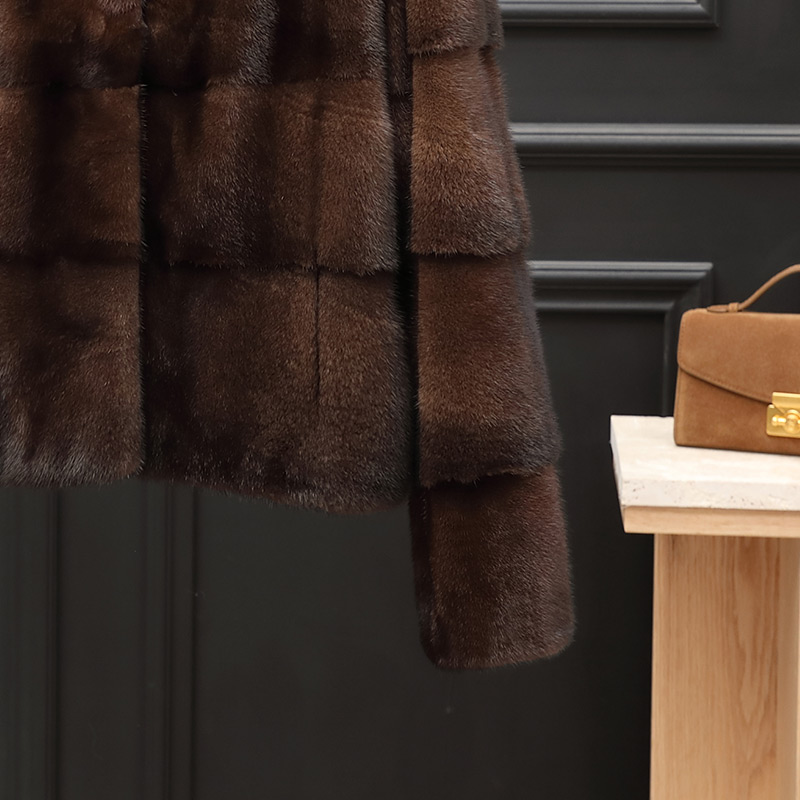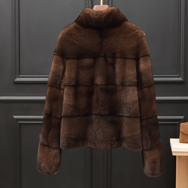 2025新款 横排夹克海宁整貂皮草外套修身 立领长袖 水貂皮大衣女短款