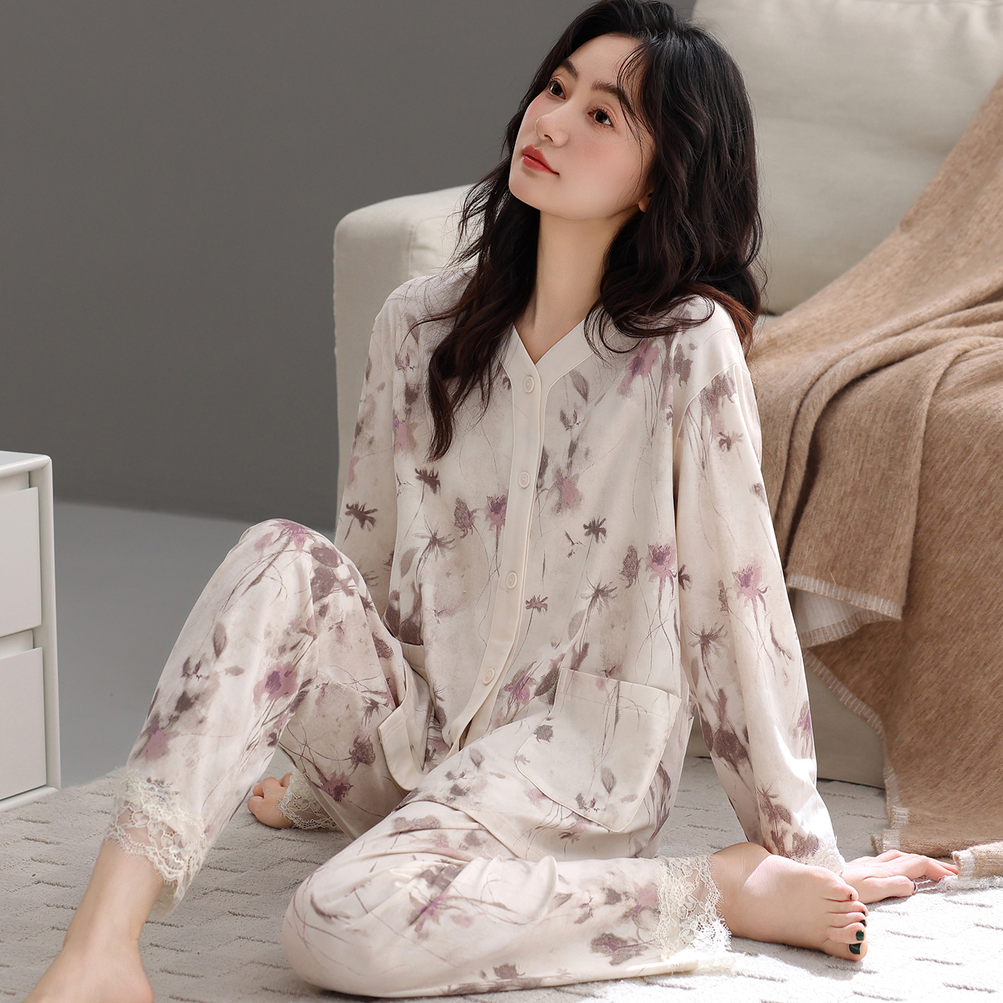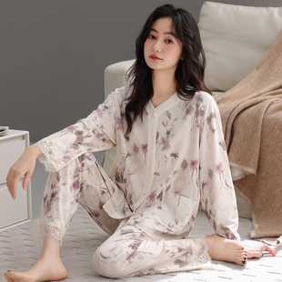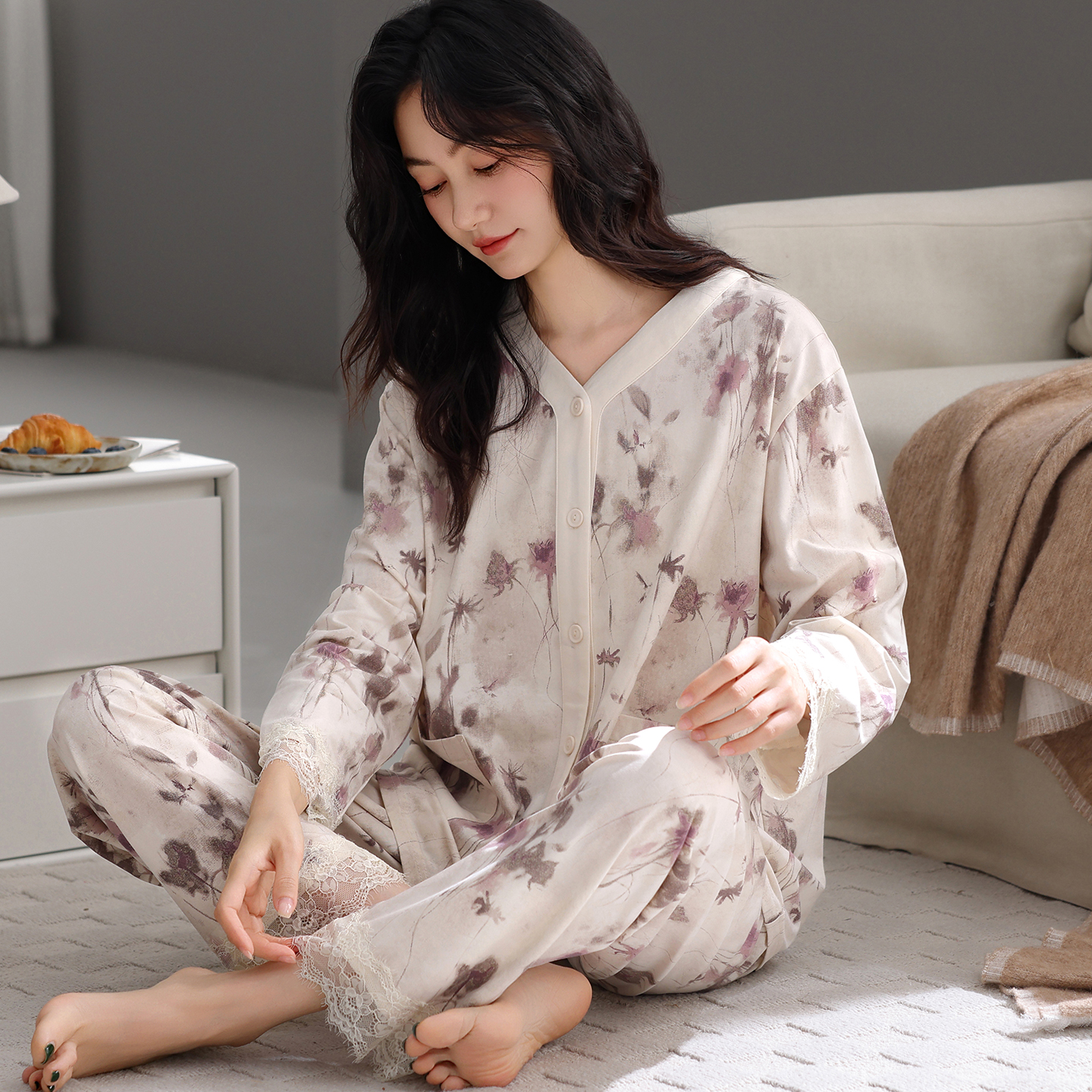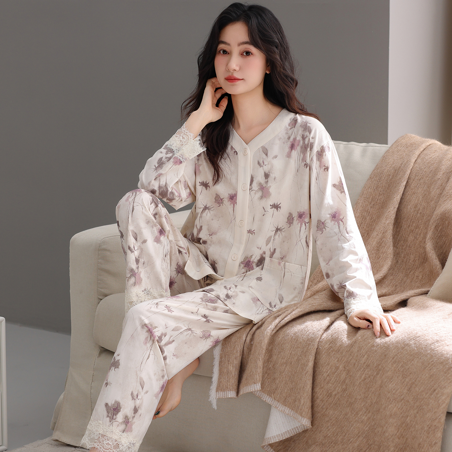 纯棉长袖 女士秋天中年人妈妈秋款 睡衣女款 高级感大码 秋季 2025新款