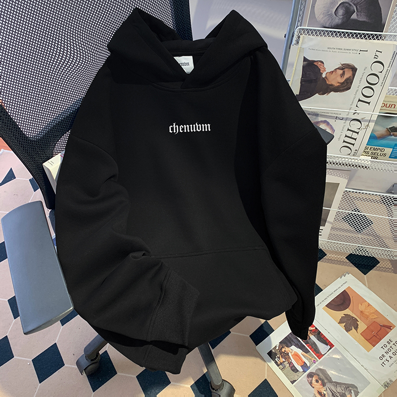 外套 潮牌字母印花上衣青少年帽衫 V37美式 重磅情侣连帽卫衣男秋季